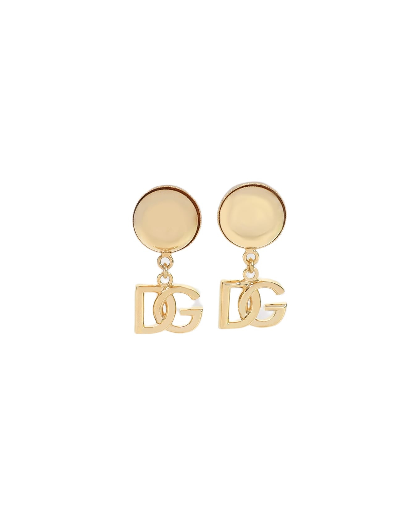 Dolce & Gabbana Gold Brass DG Clips Earrings. Pure gold-tone brass earrings, top tonal half-moon detail, tonal signature DG pendant, back clip fastening. Made in: Italy Color: Golden Model number: WEQ2V3W1111ZOO00