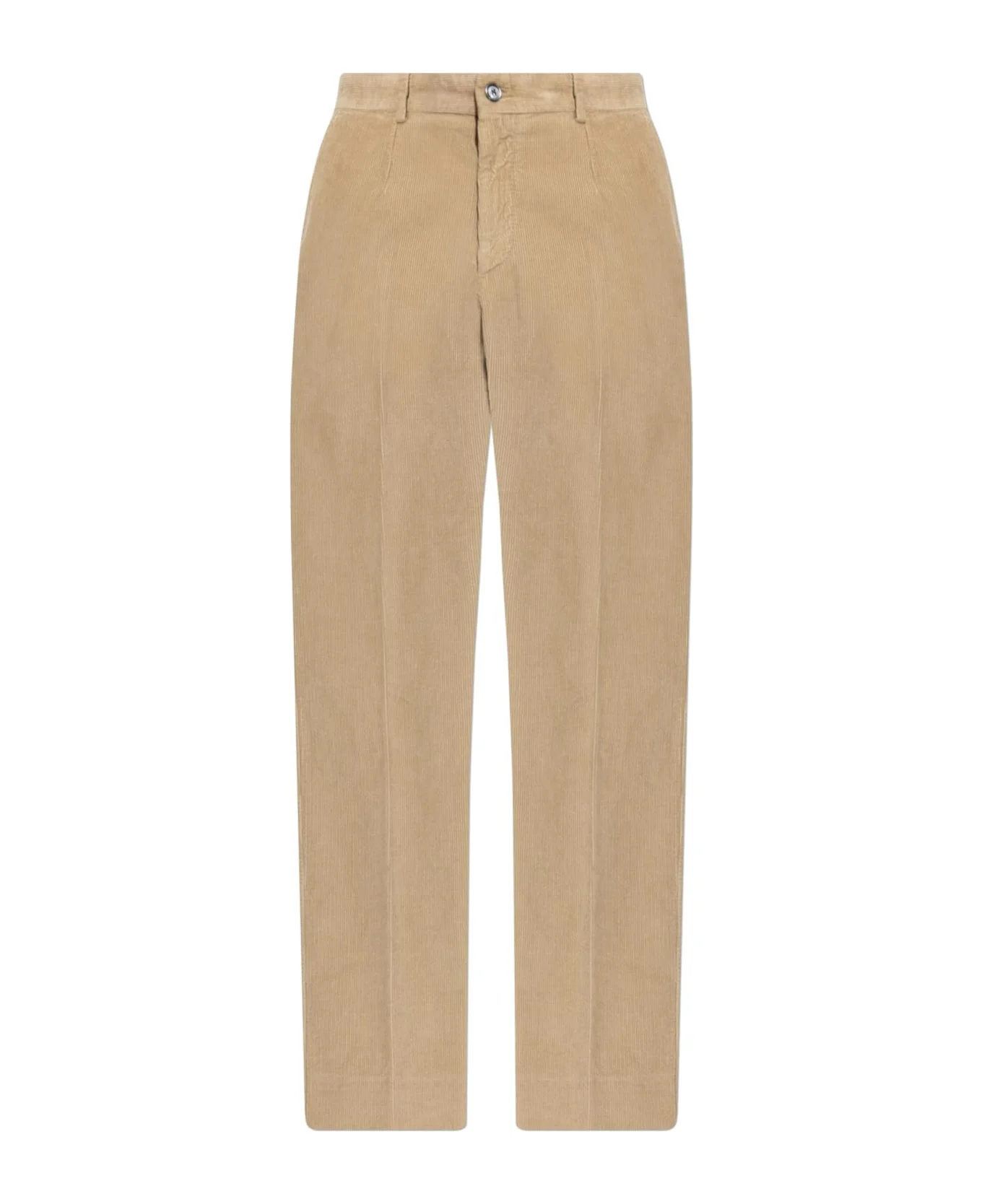 Elevate your wardrobe with these Dolce & Gabbana corduroy trousers an embodiment of Italian refinement. Impeccably tailored in a regular fit silhouette, these pants feature straight, subtly flared legs and a mid-rise waist that flatters the form while ensuring enduring comfort. The distinctive beige hue and pronounced vertical corduroy ridges offer a sophisticated texture, making them an exceptional choice for both casual and smart-casual attire. Expertly crafted from luxuriously soft corduroy, the fabric blends resilience with a supremely gentle touch. Practicality abounds with two slanted front pockets and two rear buttoned welt pockets, seamlessly integrated into the timeless design. Finished with a concealed zip fly and button fastening, these trousers capture the unmistakable elegance synonymous with Dolce & Gabbana. Why choose this product? Signature tailoring from a globally renowned Italian house Exquisite corduroy texture for distinct sophistication Versatile beige tone complements any ensemble Functional, secure pocket detailing Unmatched comfort and longevity Composition: 99% Cotton 99% Cotton 1% Elastane 1% Elastane Color: Beige Model number: GP03JTG8NN7