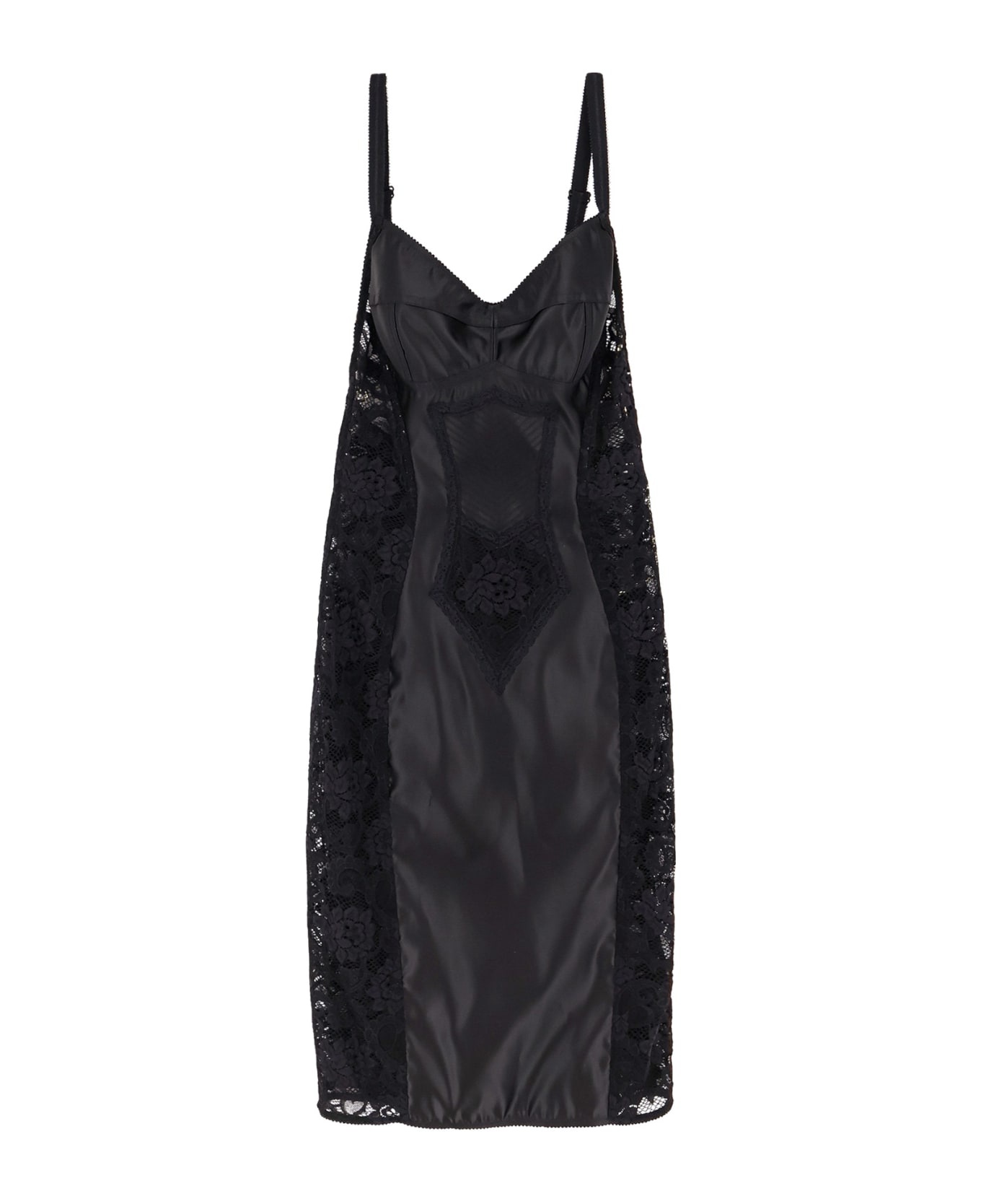 Satin and lace calf-length corset dress
