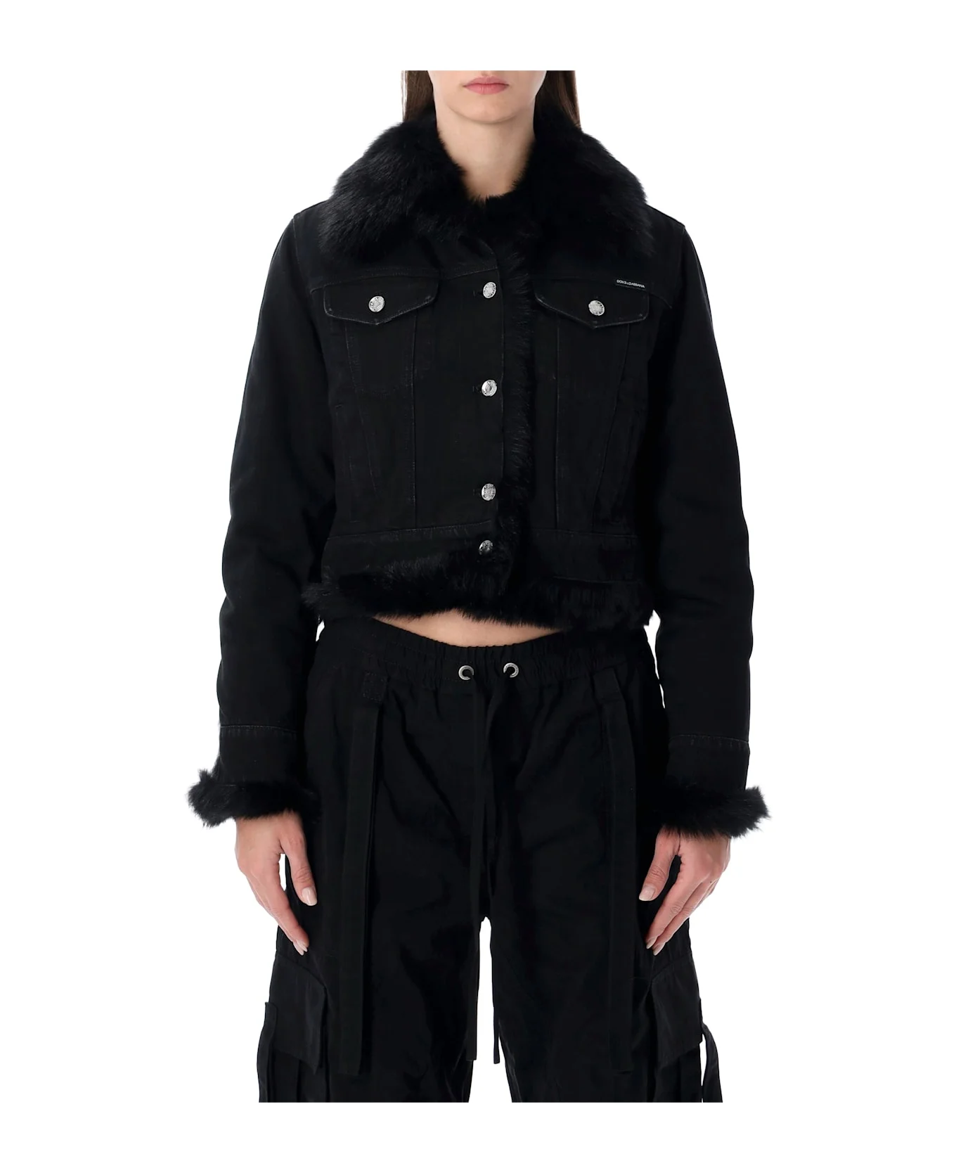 Part Of The Fall/winter 2025 Collection, This Dolce & Gabbana Jacket Redefines Denim With An Elegant Twist. Crafted From Black Cotton, It Features A Soft Faux Fur Lining And Matching Collar For Added Warmth And Texture. The Cropped Silhouette, Tonal Trims And Metallic Button Closure Make It A Versatile Statement Piece For Refined Yet Contemporary Looks. Black Cotton Denim Fabric Tonal Fur Lining And Collar Front Button Closure Chest Flap Pockets With Buttons Fur Cuffs And Hem Back Metal Logo Placket Cropped Design Alessandra Is 1,75 M And Wears Size 42 Composition: 100% cotton Lining, 70% lamb, 30% viscose Made in: Italy Color: BLACK Model number: F9S97ZG8OD8S9001