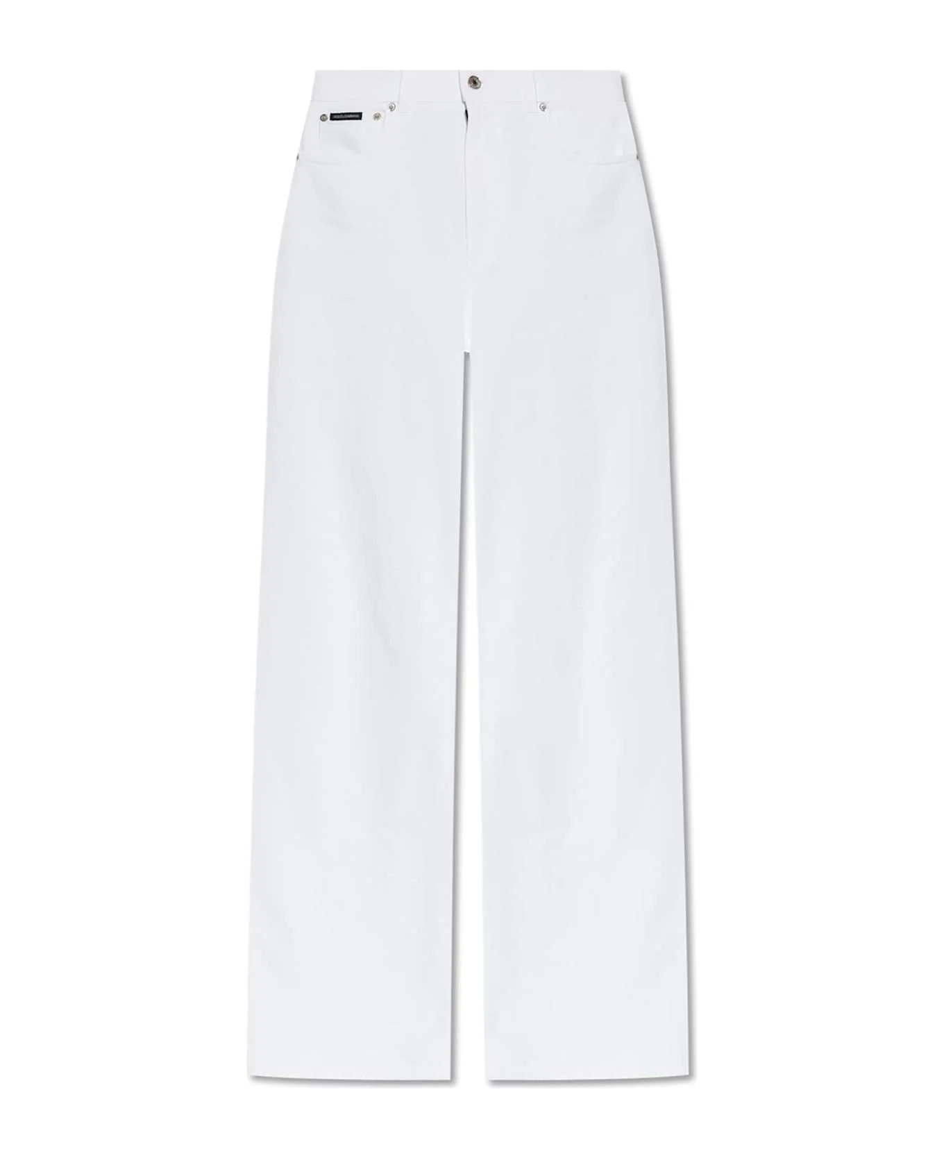 Elevate your wardrobe with the Wide-Leg Jeans from the exclusive Dolce & Gabbana collection. Meticulously crafted in premium, non-stretch denim, these high-waisted jeans feature a refined bootcut silhouette that gracefully elongates and slims the figure. The pure, immaculate white hue offers an unmistakable sense of modern luxury and sophistication. Discreet black branding details an elegant front patch and a distinctive back plaque provide a subtle nod to the world-renowned Italian house. Each element reflects the unparalleled craftsmanship and iconic aesthetic that Dolce & Gabbana has embodied since 1985, lending these jeans an unmistakable prestige and timeless allure. Why choose this product? Exquisite fabric: premium, pure cotton denim ensures structure and durability Flattering, high-rise bootcut silhouette complements any figure Immaculate white color infuses every look with refined elegance Discreet yet unmistakable signature branding distinguishes the piece Designed by Dolce & Gabbana, icons of contemporary luxury Composition: 100% Cotton Made in: Italy Color: White Model number: FTDDGDG8NV8S9001