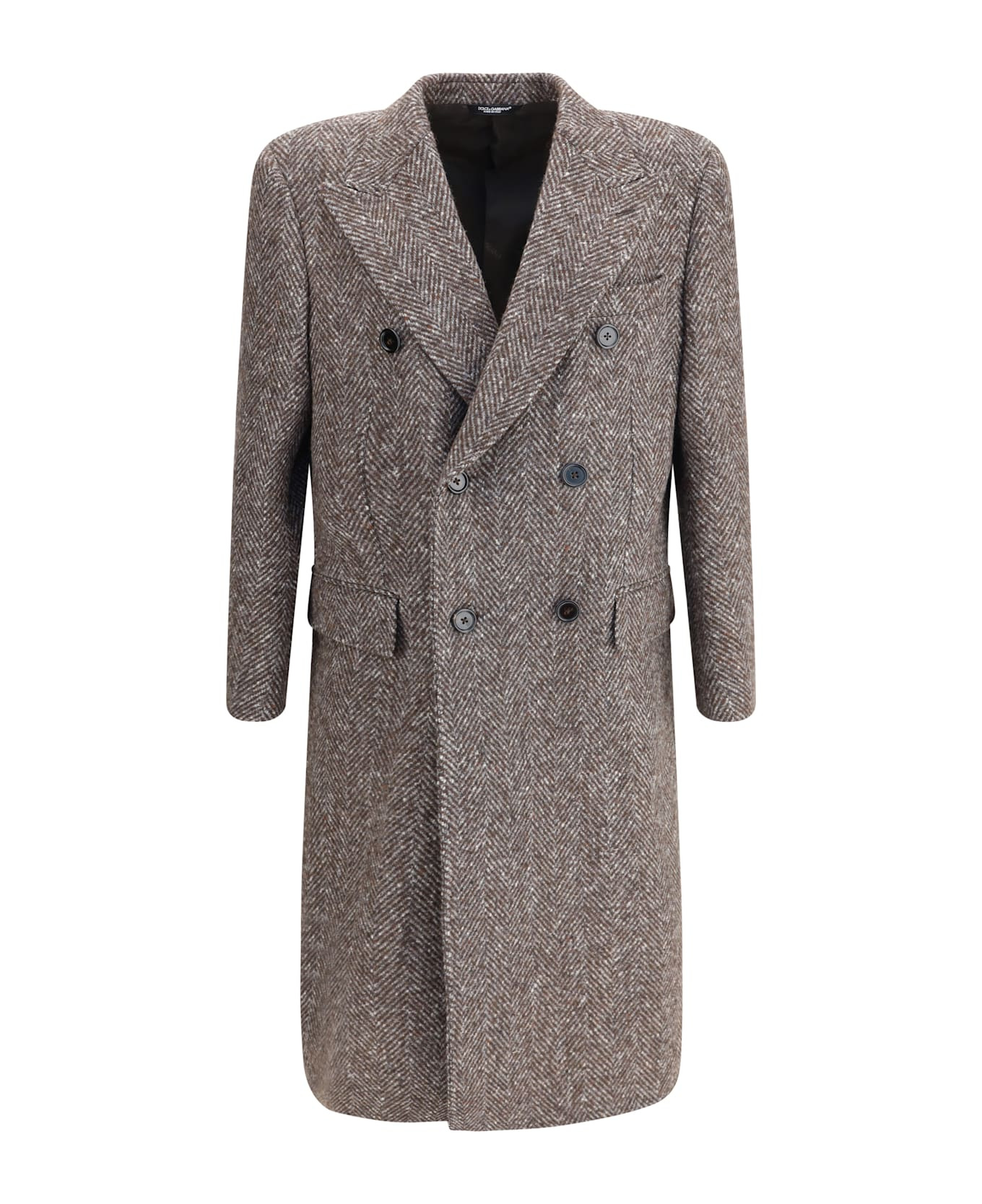 Dolce&gabbana's double-breasted coat stands out for its elegant and timeless herringbone pattern. it features a button closure, a wide lapel and two flap pockets on the front. the design is completed with a martingale and a back slit for a refined and comfortable fit. Composition: 100% % Fleece Wool Made in: Italy Model number: G038ZTFC2FDS8030