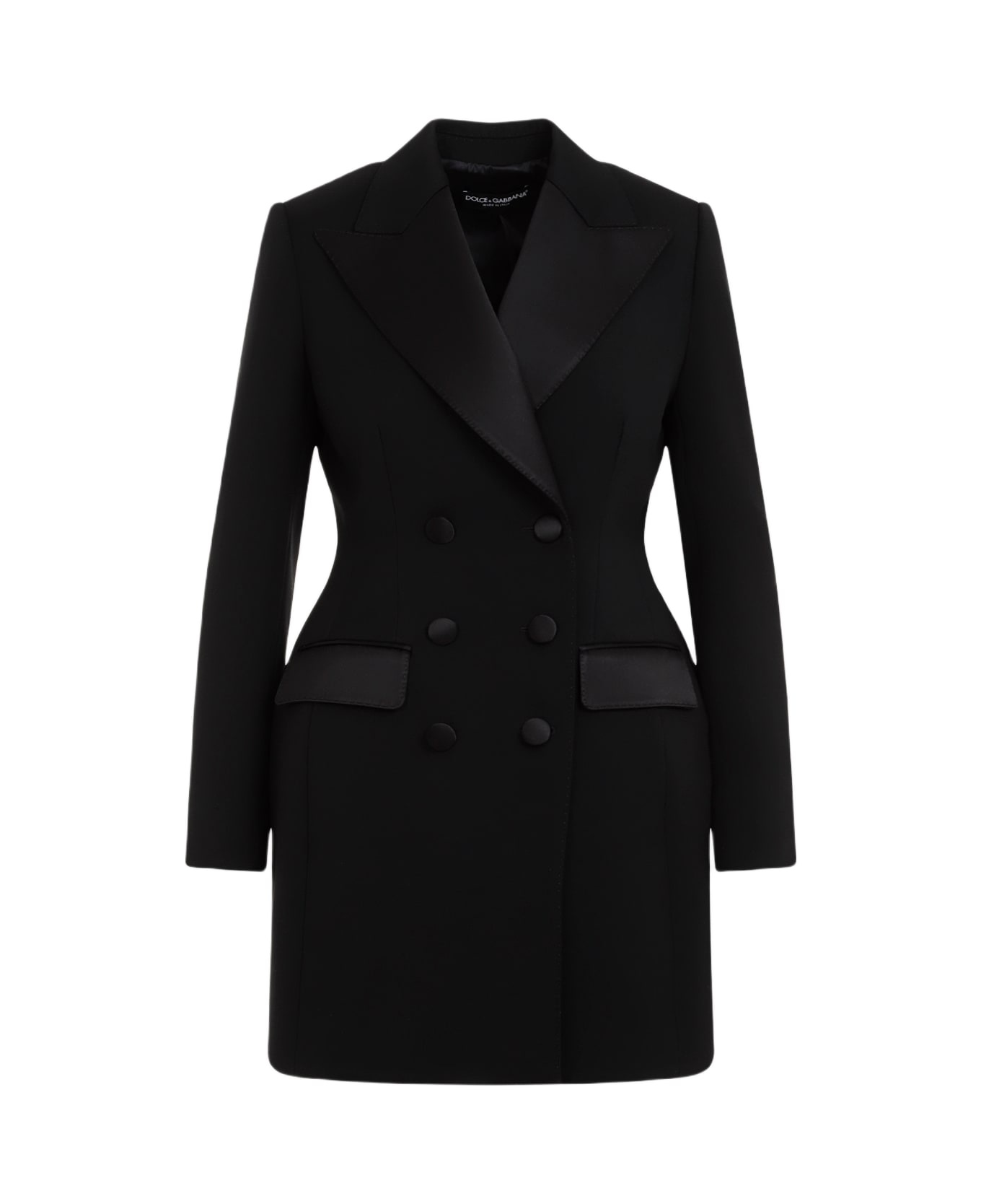 Long double-breasted Dolce tuxedo jacket in stretch wool