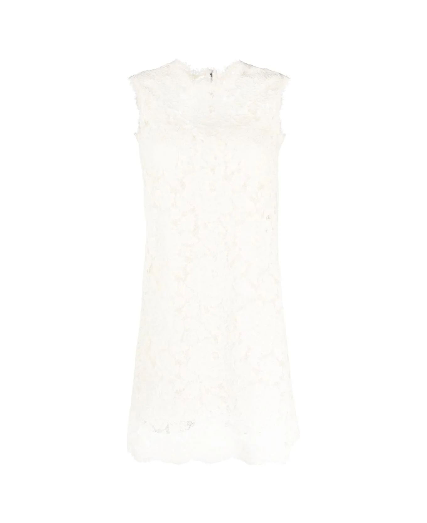 ivory white cotton blend guipure lace round neck concealed rear zip fastening sleeveless internal slip dress above-knee length Composition: Outer: Viscose, 51% , Cotton, 24% , Polyamide, 20% , Spandex/elastane, 5% Lining: Silk, 91% , Spandex/elastane, 9% Made in: Italy Color: White Model number: F6ATYTFLRE1W0001