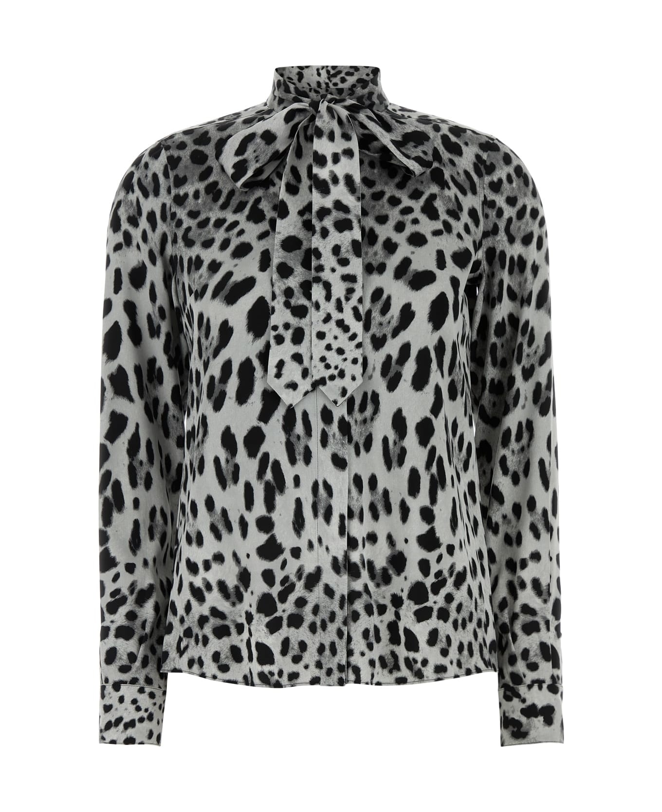 Leopard Printed Pussy-bow Charmeuse Shirt