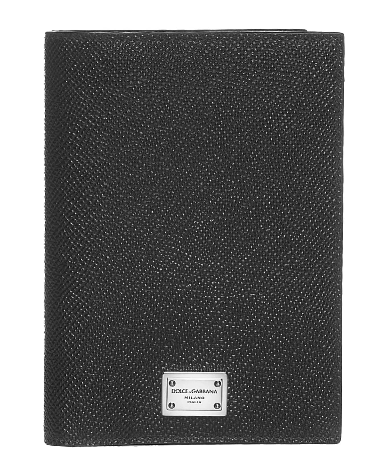 Calfskin passport holder with logo tag