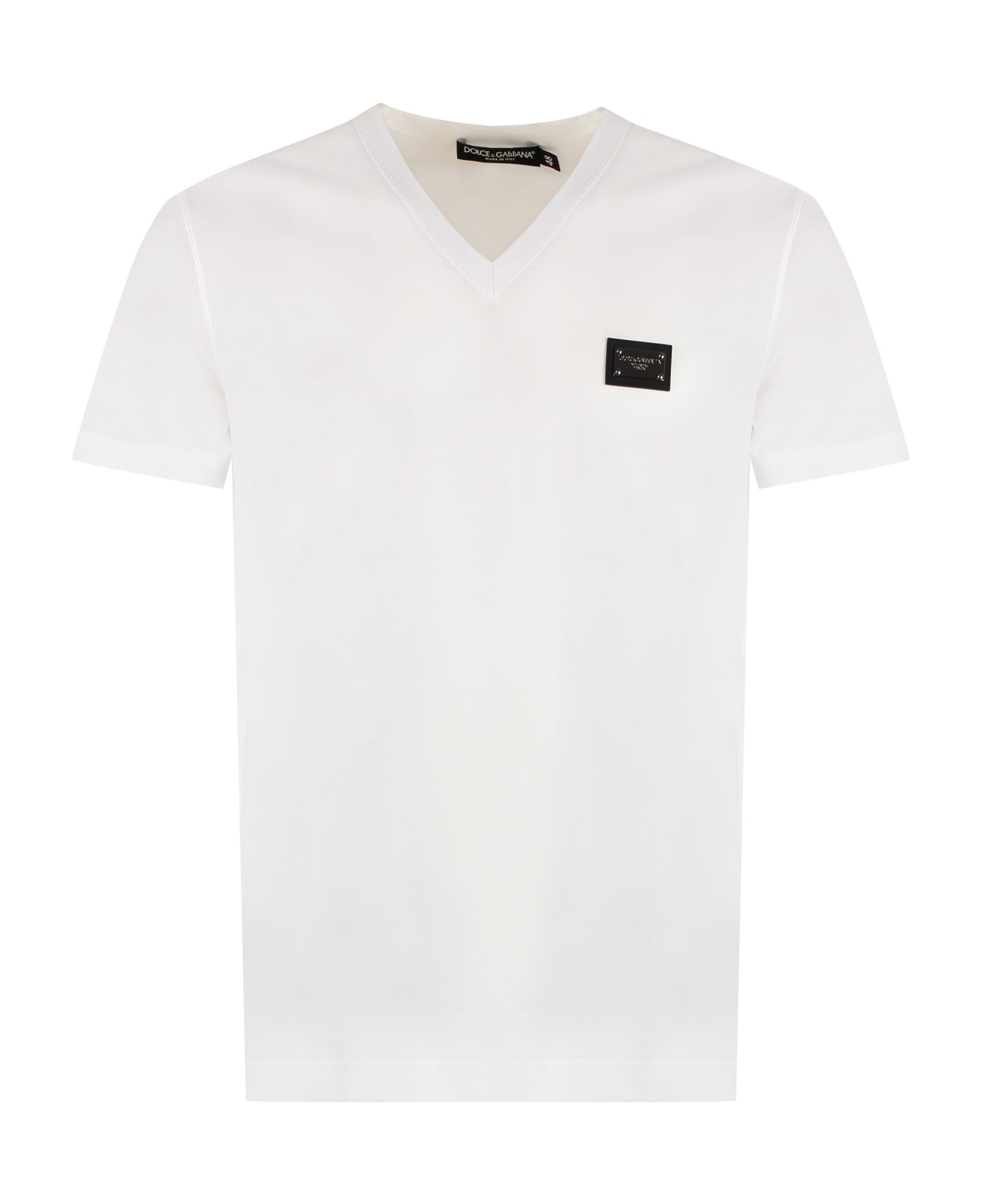 Cotton V-neck T-shirt with branded tag