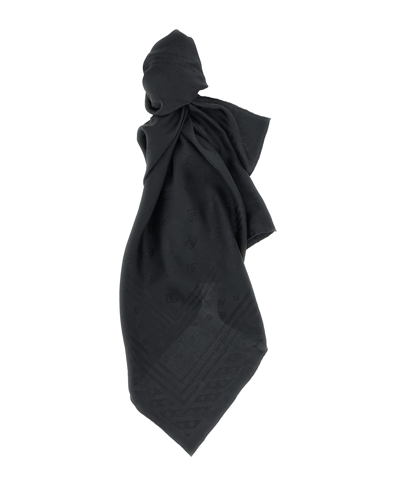All over tone-on-tone logo print silk scarf. Composition: 100% silk Made in: Italy Color: Black Size and fit: - 90 x 90 cm Model number: FN090RGDCWUN0000