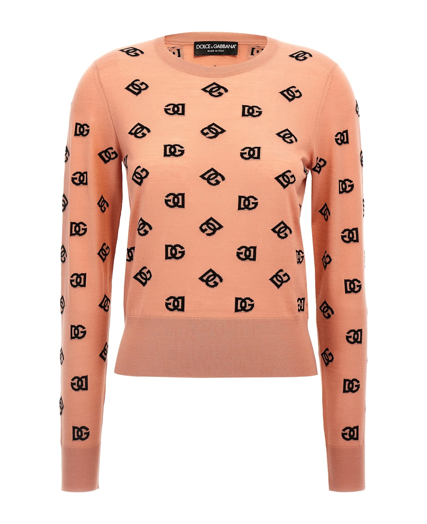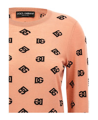 All over logo jacquard wool and silk sweater, crew neck, long cuffed sleeves. Composition: 91% virgin wool 9% silk Made in: Italy Color: Pink Size and fit: - true to size fit Model number: FXJ34TJFMGSF0473