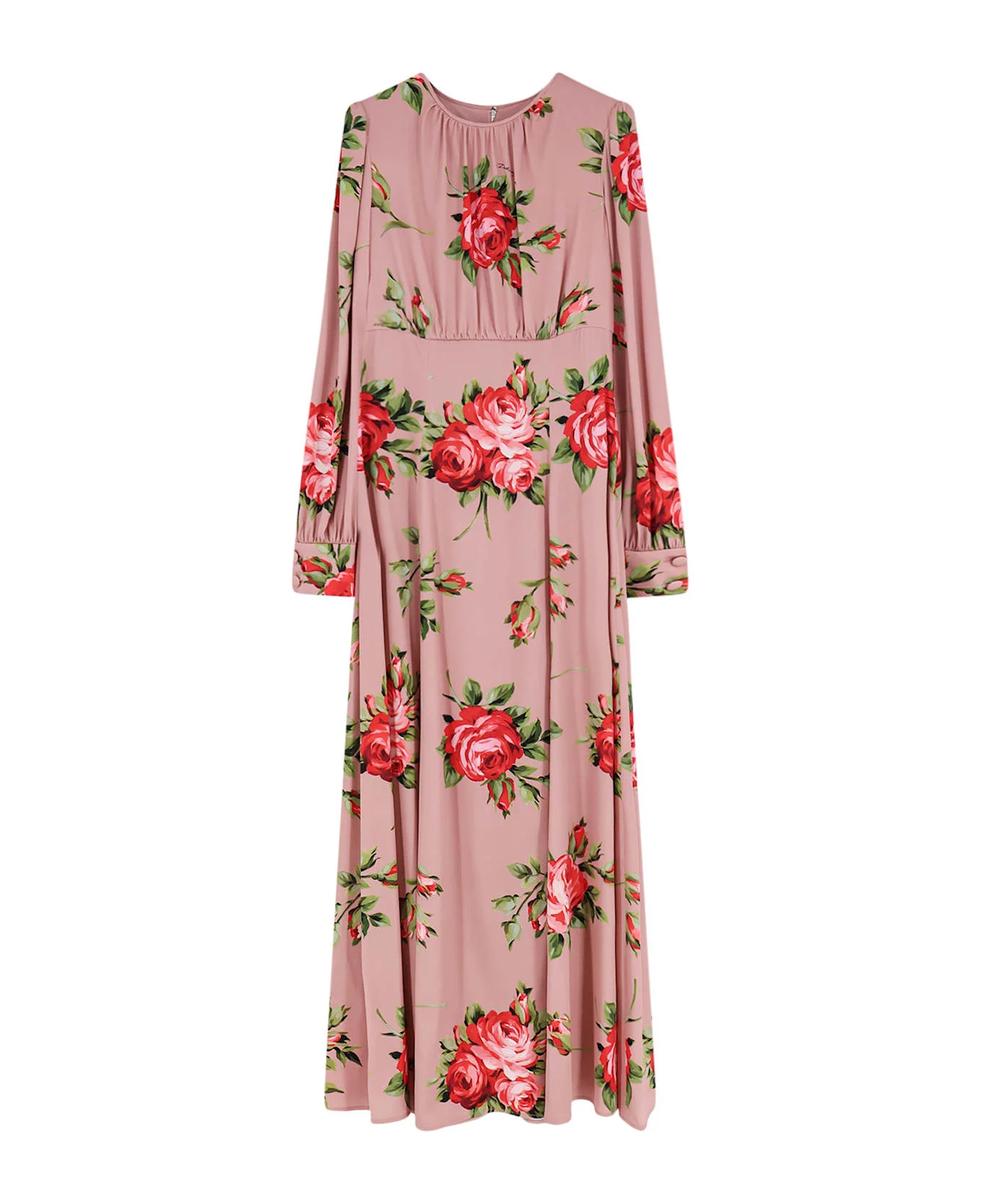 Pink crêpe dress with Bouquet print by Dolce & Gabbana