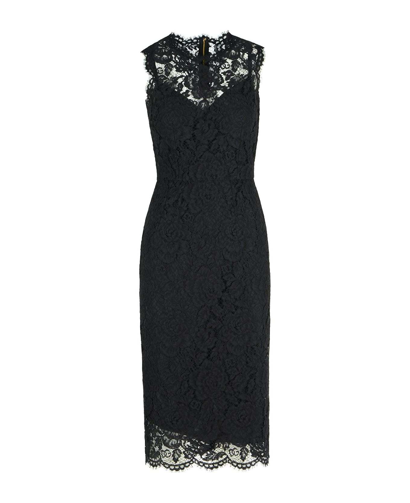 'longuette' Black Stretch Lace Dress