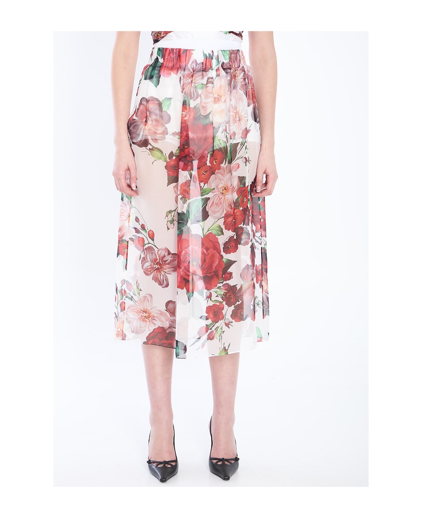 Longuette Skirt With Rose Print