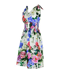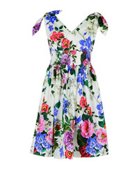 Cotton midi dress with floral print and tie details