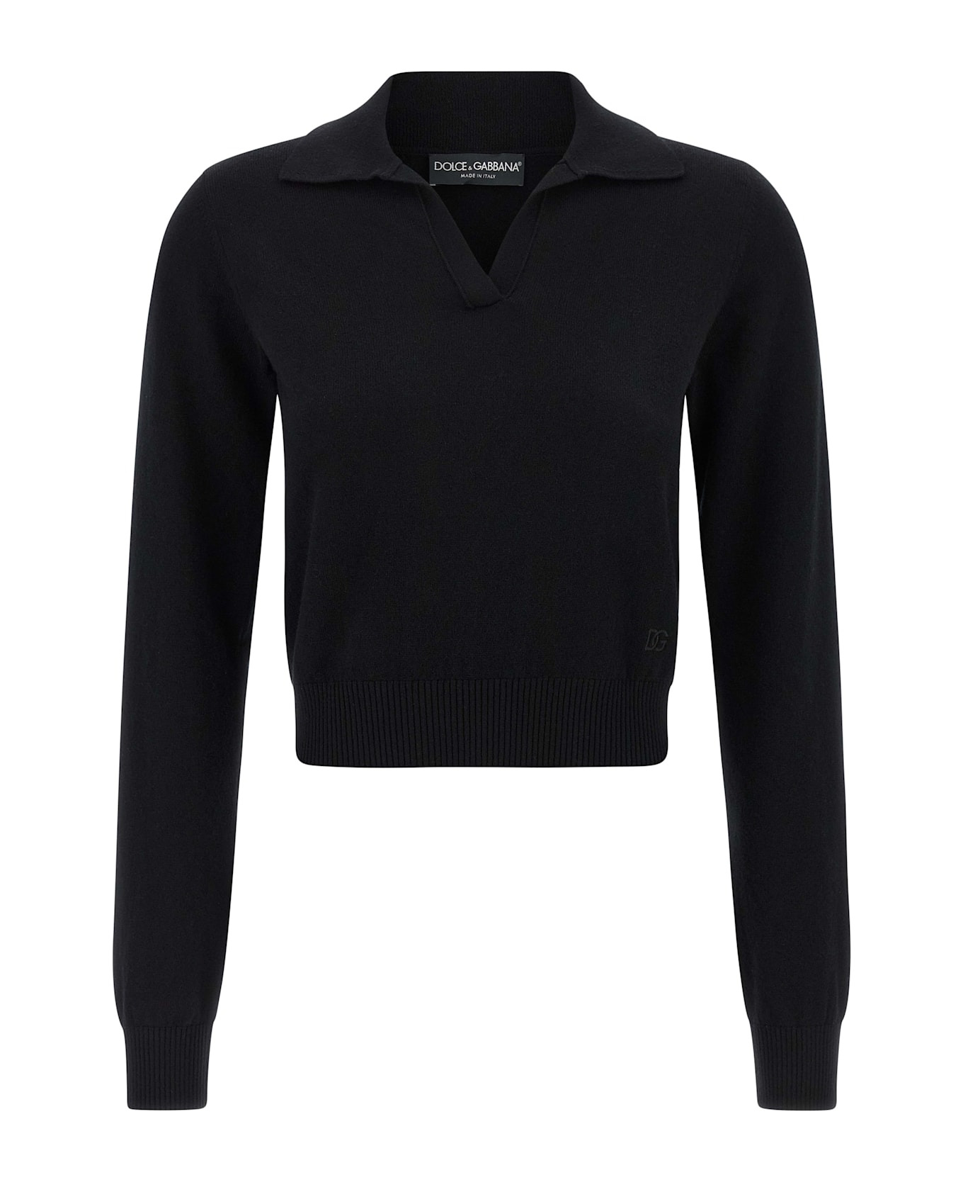 Polo-style cashmere sweater with collar and V-neck, tone-on-tone logo embroidery on the front, long sleeves with cuffs and slightly reduced shoulders. Composition: 100% cashmere Made in: Italy Color: Black Size and fit: - true to size fit Model number: FXZ33ZJDVC2N0000