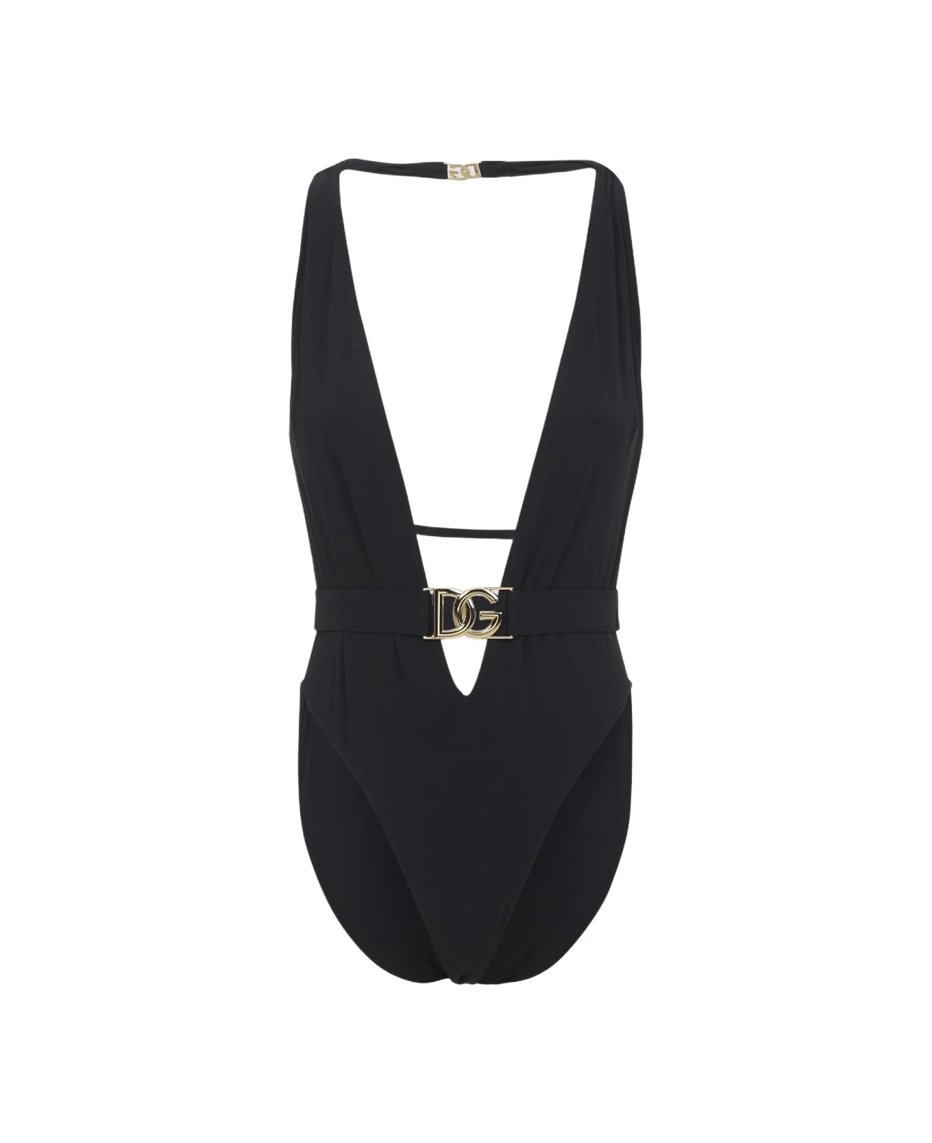 Dolce & Gabbana Black Polyamide One-Pice. Crafted from black tech fabric, with a deep V-neckline on the front, a straight open back, a strap with buckle at the back of the collar, a detachable belt with DG charm, and fully lined. Made in: Italy Color: Nero Model number: O9B74JONO12N0000