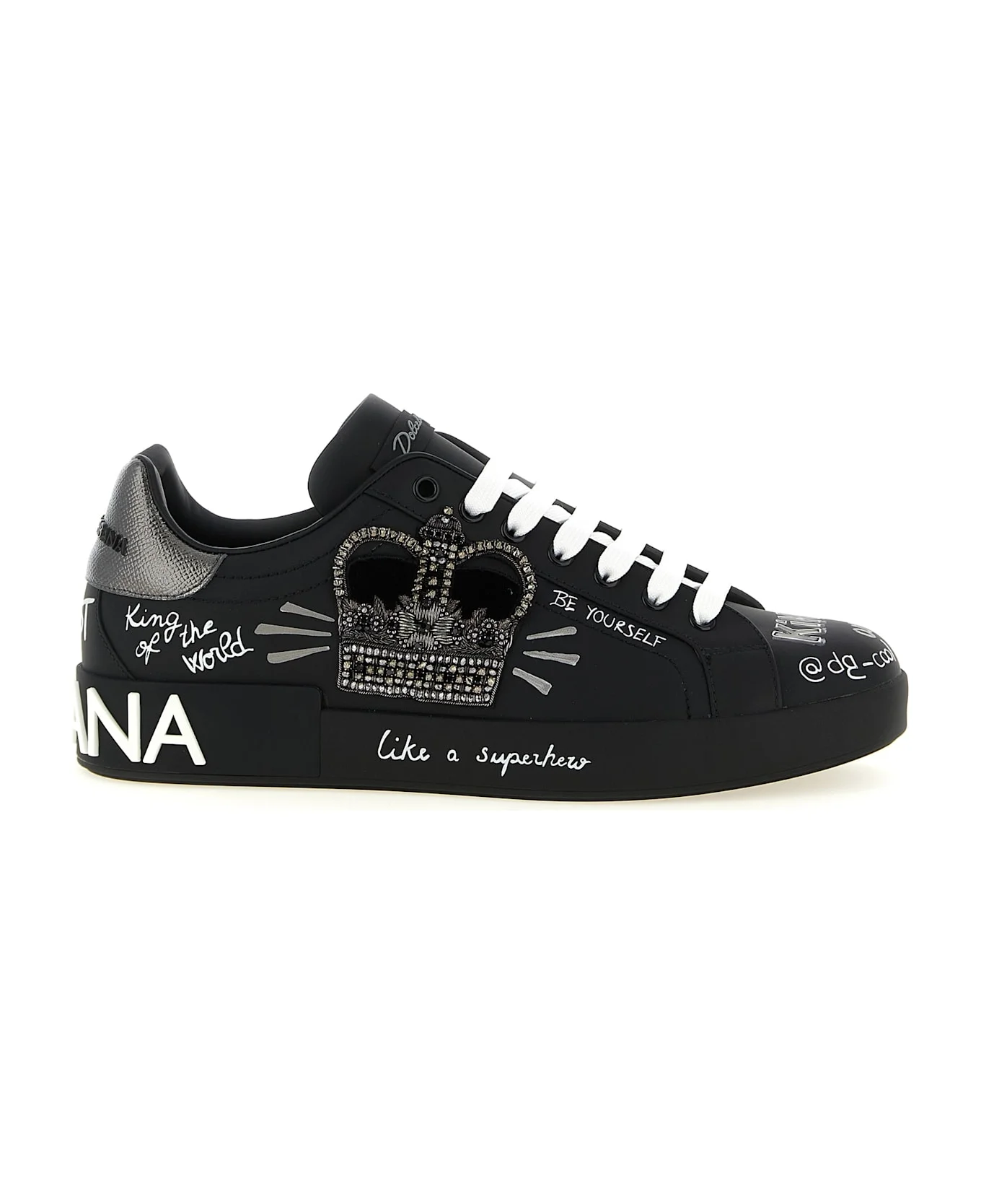 'Portofino' leather sneakers with hand-painted lettering and side jewel detail, lace-up closure, logo rubber sole. Composition: 80% lh 5% gl 5% brass 5% silk 5% polyester Made in: Italy Color: Black Size and fit: - EU MEN Model number: CS1760AZ2688T724