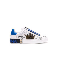 Dolce&Gabbana white Portofino sneakers, round toe, logo on back, laces closure, applications Composition: 100% Leather, Rubber Sole Made in: Italy Color: Blue Size and fit: - EU SIZE (IT) Model number: CS1759A02198W921