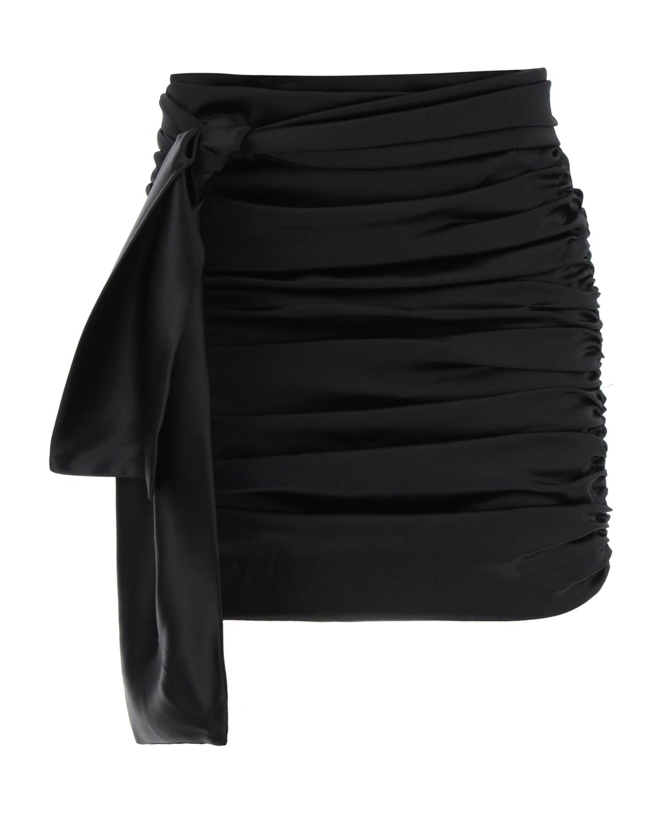 Short draped satin skirt with side bow
