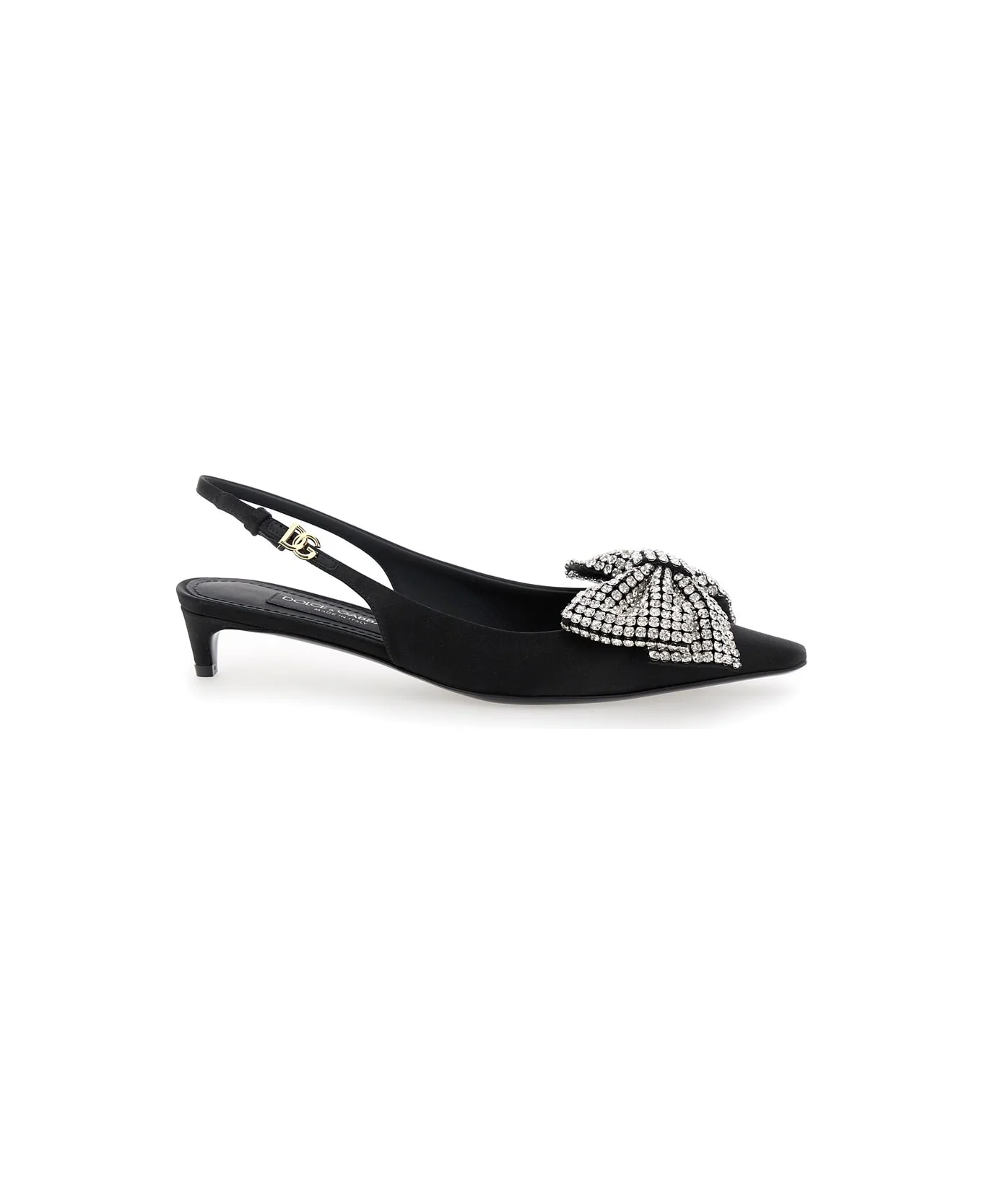Satin slingbacks with rhinestone embellishment