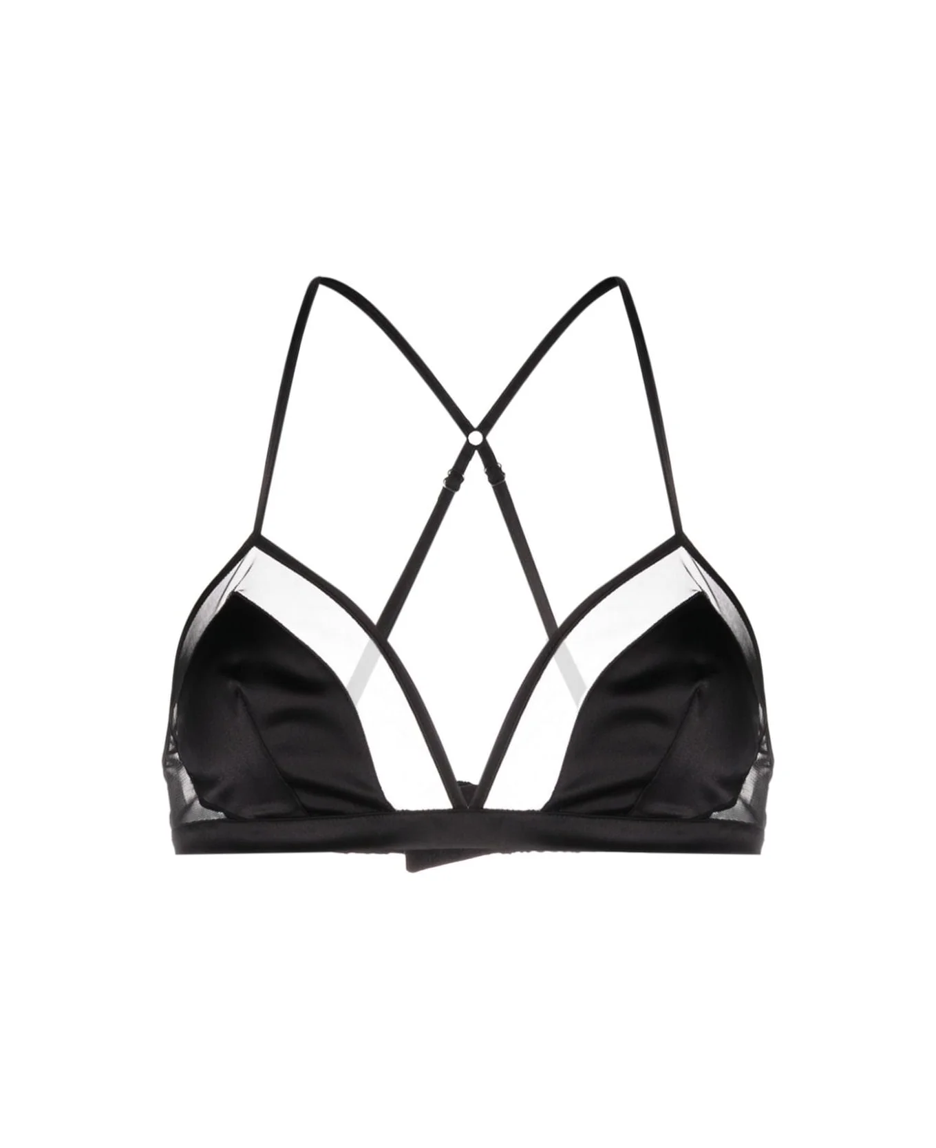 panelled tulle satin bra from DOLCE & GABBANA featuring black, silk blend, satin finish, semi-sheer panels, tulle panels, triangle cup, sweetheart neck, rear criss-cross straps, adjustable spaghetti straps, sleeveless and concealed rear hook and zip fastening. Just a reminder that this piece must be tried on over your own garments.. Composition: Silk, 85% Polyamide, 10% Elastane, 5% Made in: Italy Color: Black Model number: O1F24TONL25N0000