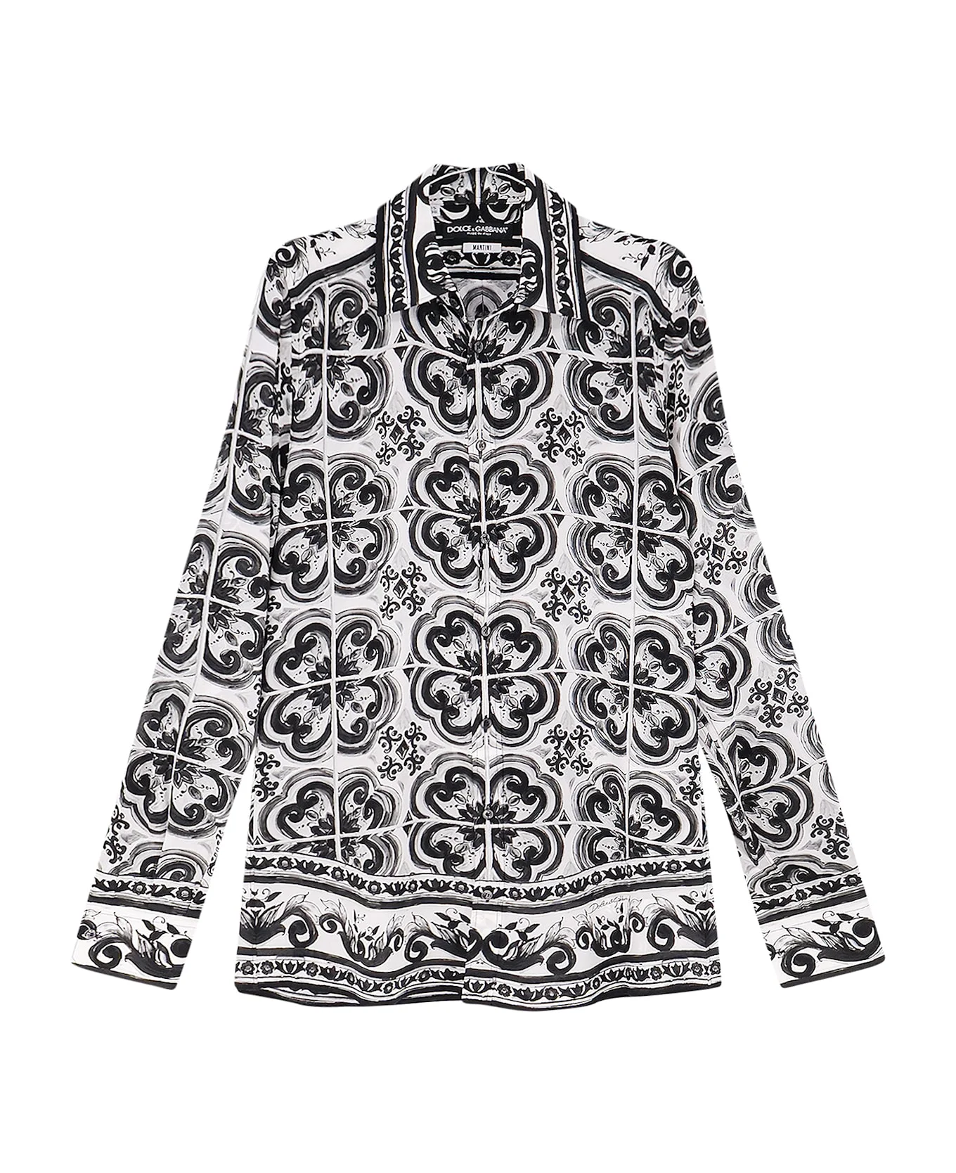 Classic collar Button closure Long sleeves Made in Italy 100% Silk SKU: G5MM4THI1Y5IU3TN Made in: Italy Color: MAIOLICA 3 NERO Model number: G5MM4THI1Y5IU3TN