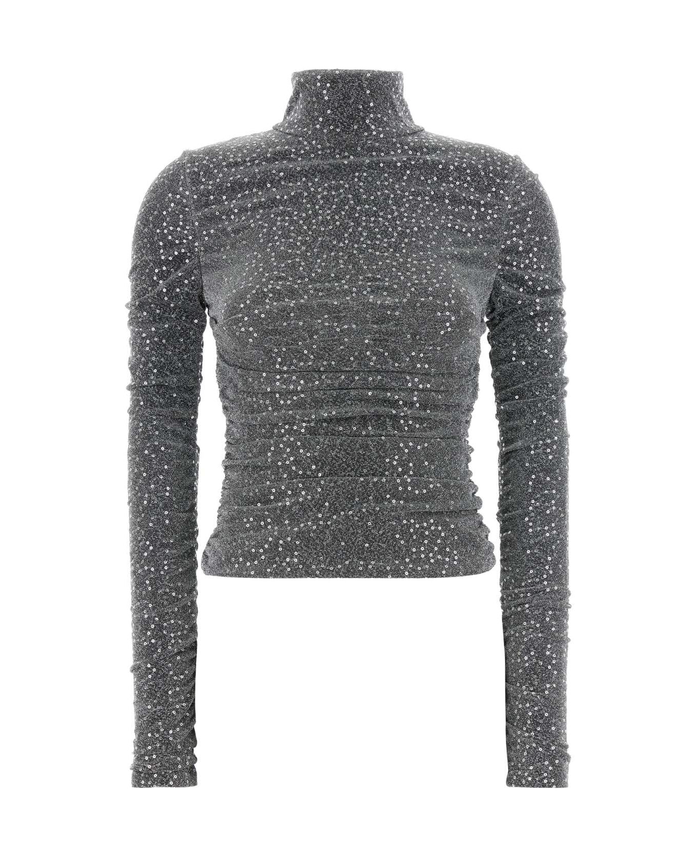Draped sequined turtle-neck top