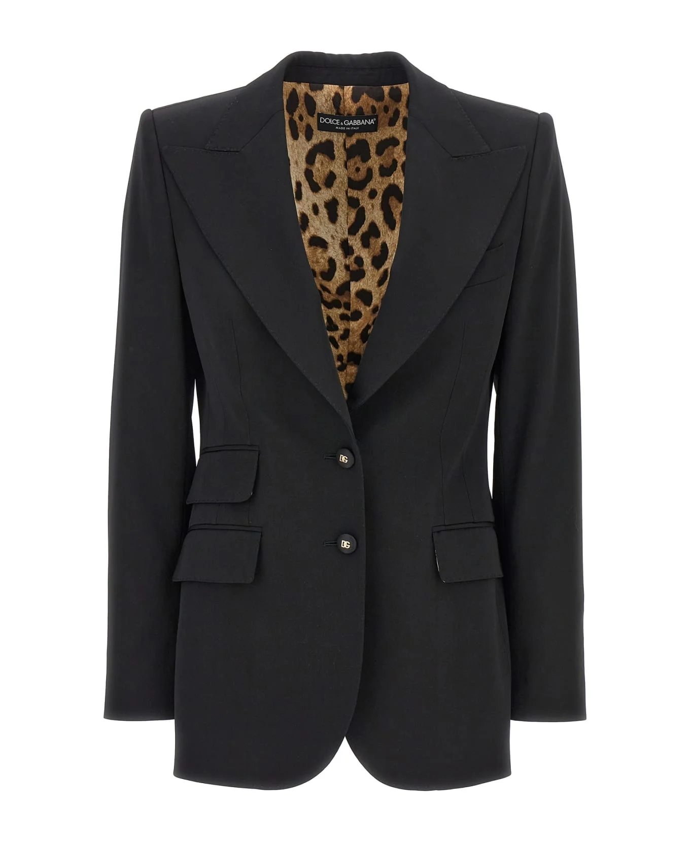 Single-breasted blazer in stretch wool with front logo button closure, pockets, padded shoulders, long sleeves, back split. Composition: 97% virgin wool 3% elastane Color: Black Size and fit: - true to size fit Model number: F29Z8TGDCL0N0000