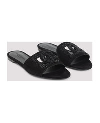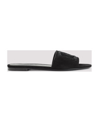 Dolce & Gabbana Black Goat Leather Slides. Pure black goat leather slide slippers, round opened toe, top tonal strap, top signature DG logo with tonal crystals, top cut-out details, slip-on style, tonal sole, flat design. Made in: Italy Color: Nero Model number: CQ0666AV14880999