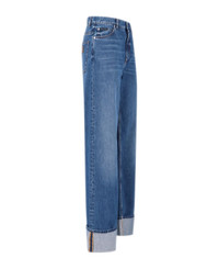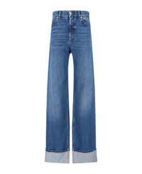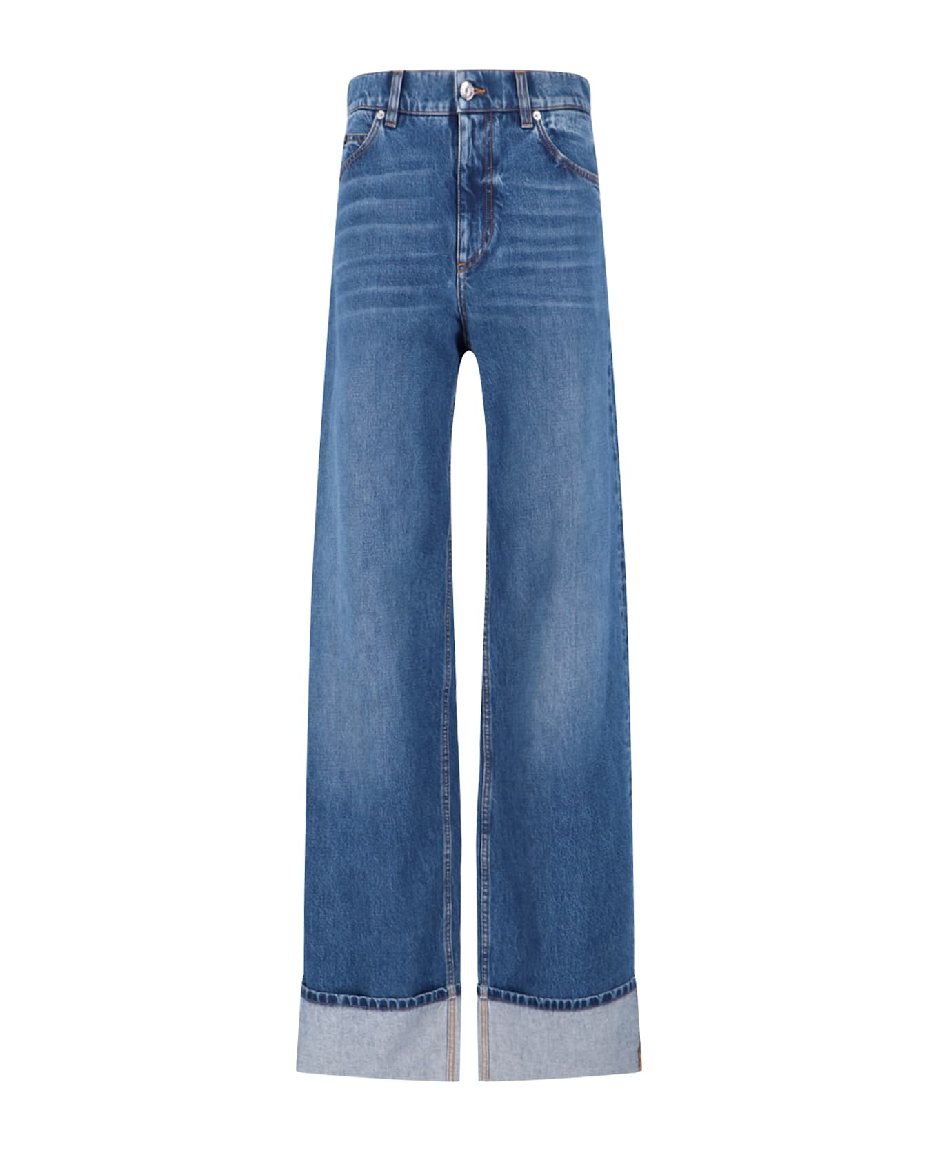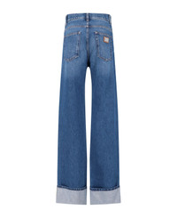Dolce&Gabanna blue cotton jeans with turn-up, distressed wash, high waist, belt loops, button and zip closure, five-pocket design, front logo label, silver logo plate on the back, turn-up hem, straight leg. Composition: 100% Cotton Made in: Italy Color: Blue Size and fit: - Vestibilita regolare Model number: FTDCDDG8NR3S9001