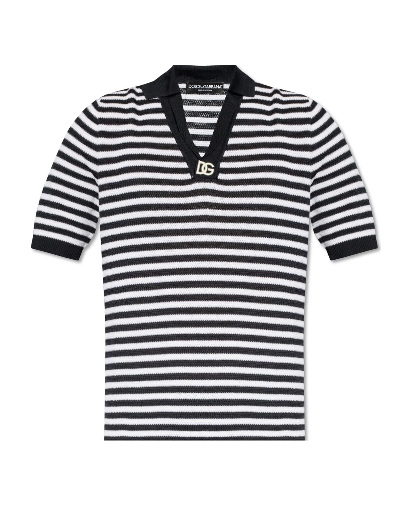 Striped cotton V-neck polo-shirt with DG logo