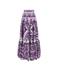 Violet Long Skirt With Ruffle Hem And All-over Floral Motif In Cotton Woman