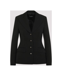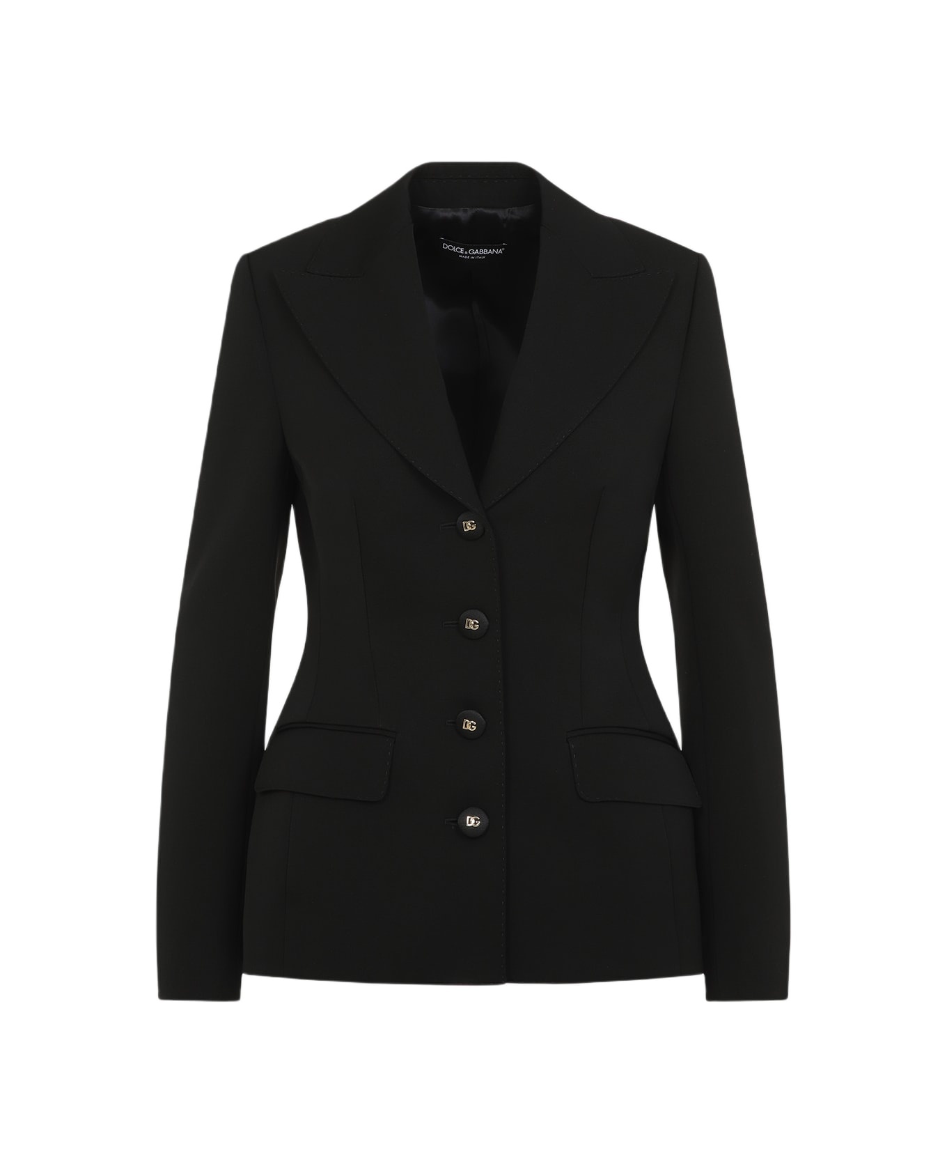 Dolce & Gabbana Black Virgin Wool Jacket. Black virgin wool, single-breasted, peak lapels, branded button fastening, reinforced shoulders, two front flap pockets, log sleeves, buttoned cuffs, hourglass-shaped, lined. Made in: Italy Color: Nero Model number: F27DCTFUBGEN0000