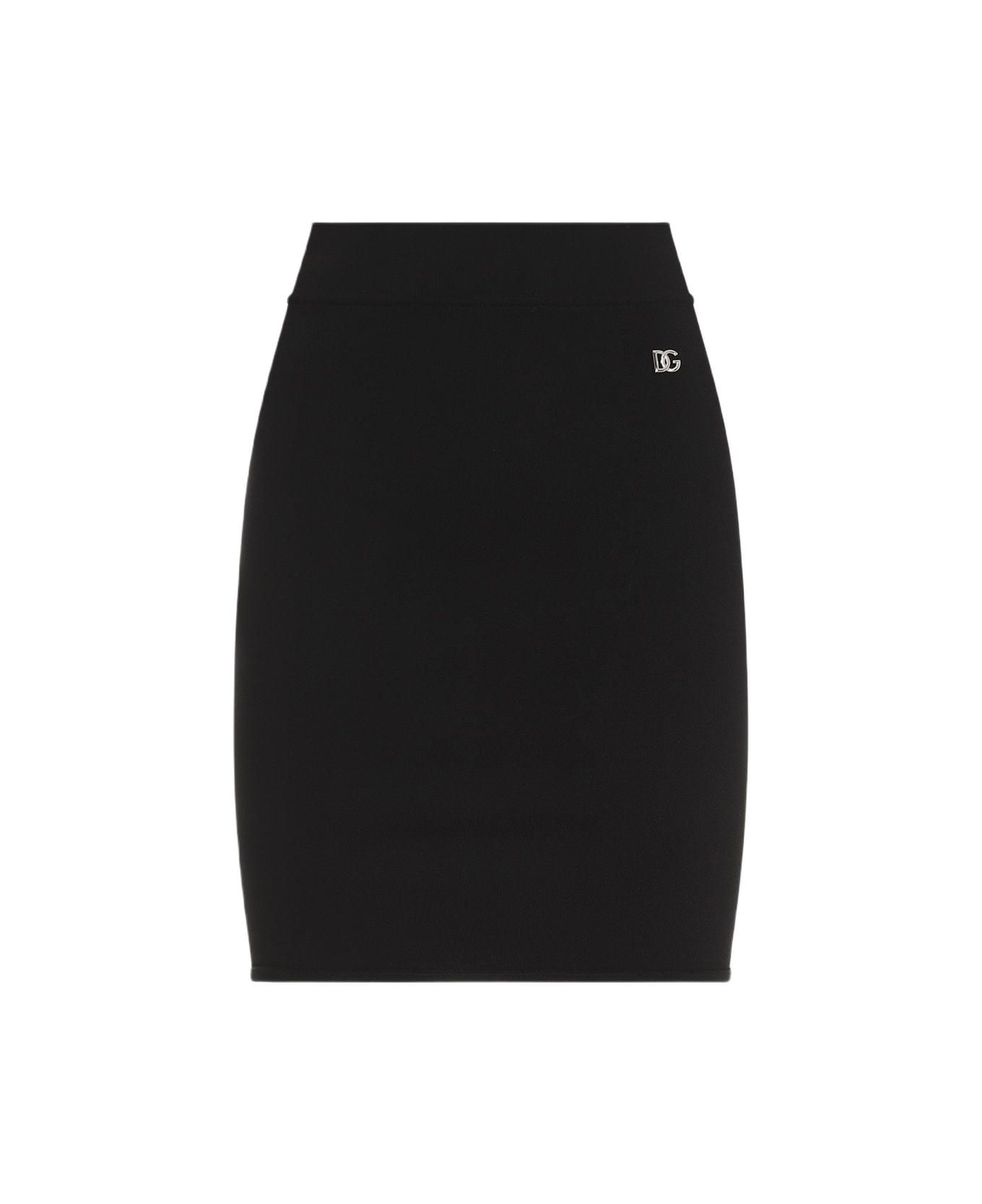 Dolce & Gabbana Black Viscose Mini Skirt. Crafted from black stretch viscose yarn, high-rise, silver-toned metal logo on the side, back concealed zip and hook closure, pencil skirt design, mini-length, rolled edges, unlined. Made in: Italy Color: Nero Model number: FXO11TJFMGV