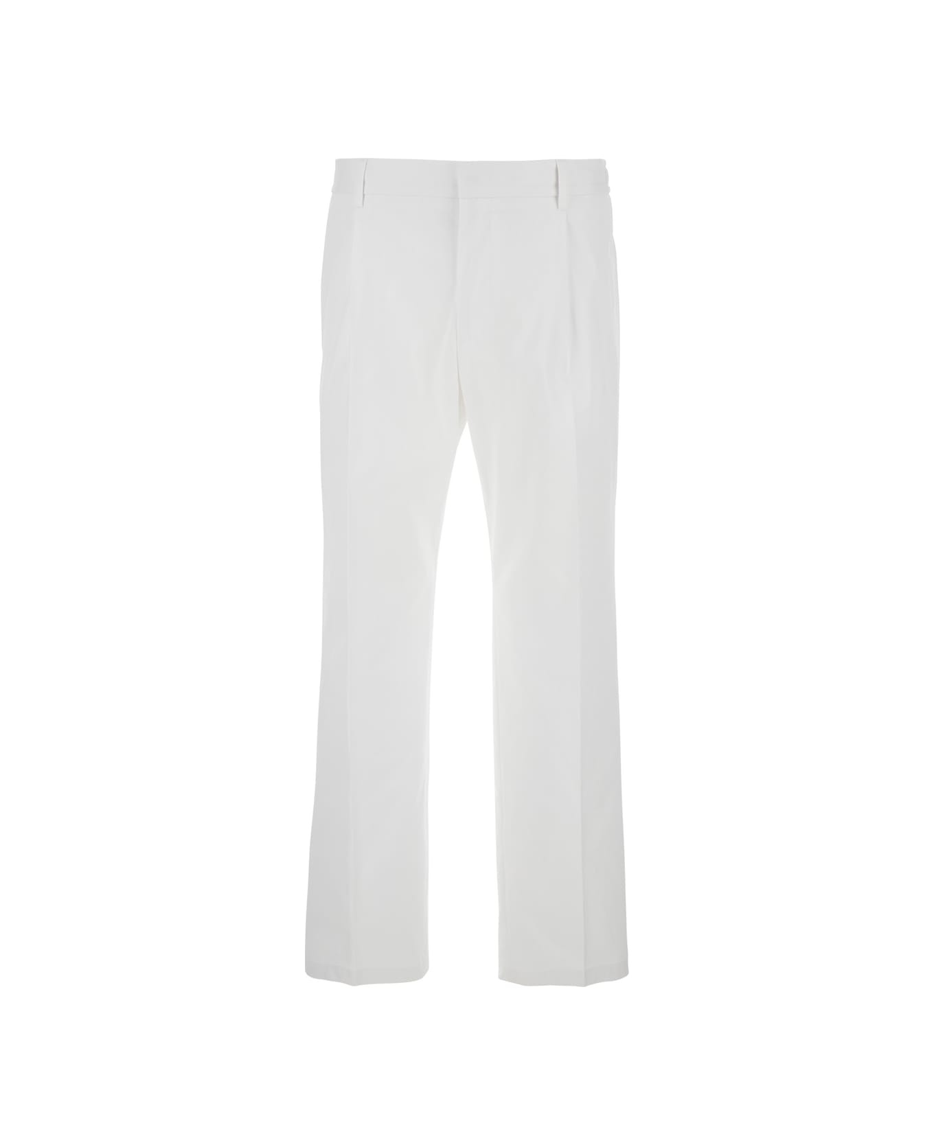 White Five Pocket Pants With Logo Plaque On The Back In Cotton Man