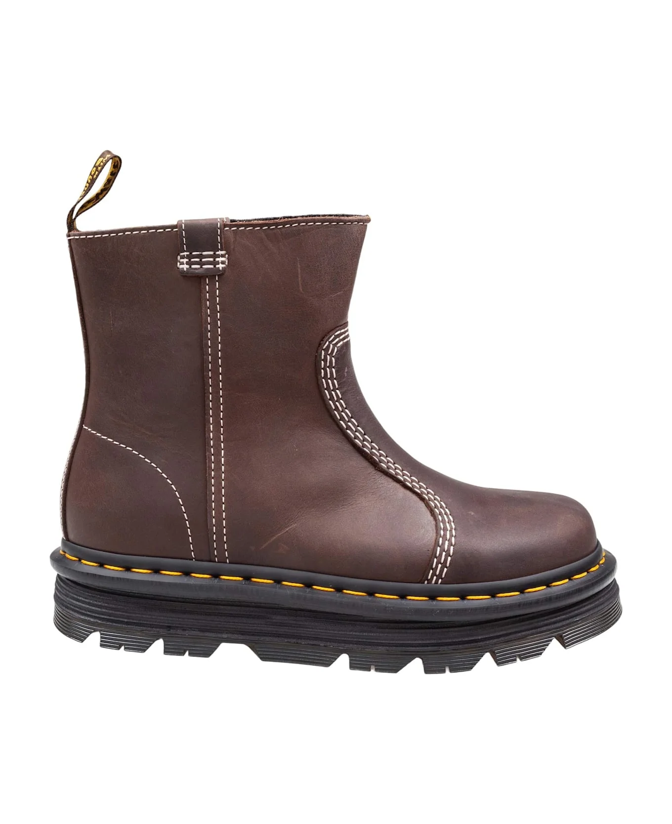 Zebzag rigger wyoming leather ankle boot 42662200 brown made of 100% premium leather contrasting stitching dr. martens treaded sole known for its durability and comfort the distinctive heel pull tab makes it easy to put on lace-free perfect ankle boots for the colder seasons composition: 100% leather fabric lining made in vietnam Made in: Vietnam Model number: 42662200