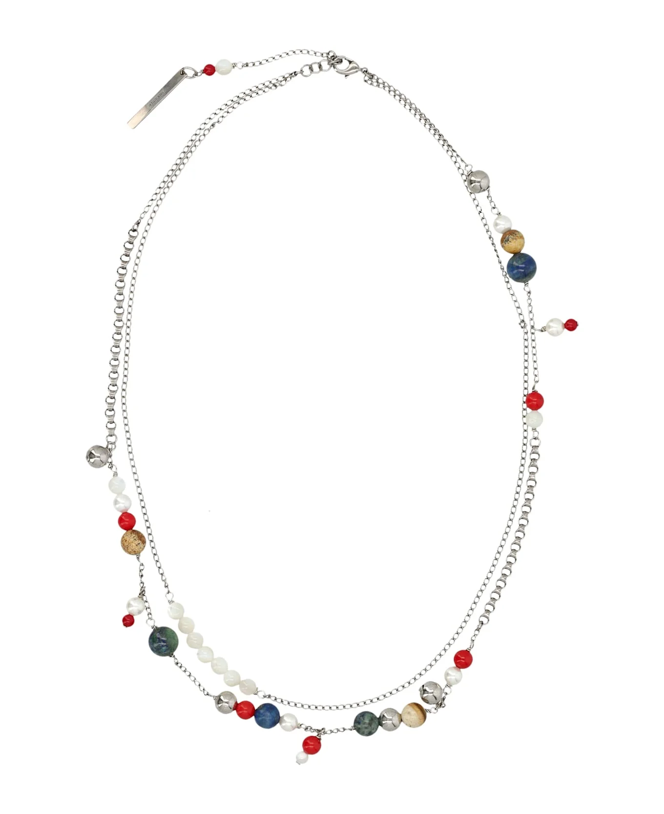 An Expressive Accessory That Reflects Dries Van Noten s Eclectic Aesthetic, This Handmade Necklace Blends Artisanal Craftsmanship With Refined Materials. Crafted In Brass, It Features An Irregular Composition Of Natural Stones And Freshwater Pearls, Creating A Balanced Contrast Of Textures And Colors. Designed To Elevate Both Minimal And Statement Looks With Effortless Sophistication. Handmade Brass Construction Natural Stones In Mixed Tones Freshwater Pearl Accents Double-chain Design With Decorative Elements Lobster Clasp Fastening Composition: 70% Brass, 15% Semi-precious Natural Stones, 10% Pearl, 5% Coral paste Made in: Italy Color: MULTI Model number: 0282310079980