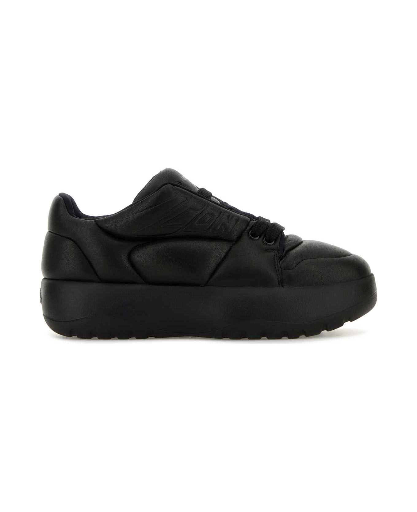 Black Leather Puffer Sneakers