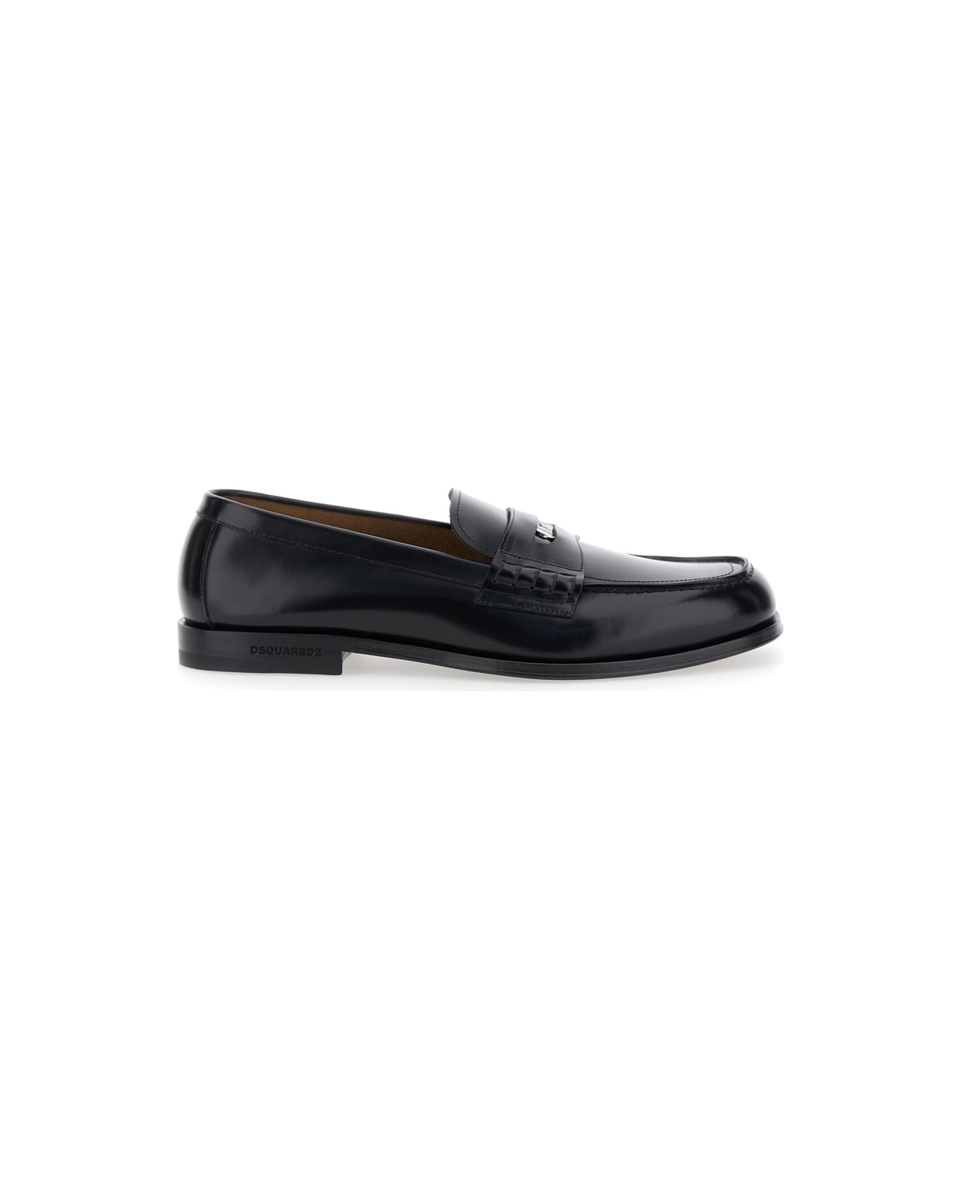Black Loafers With Logo Plaque On The Front And Logo Lettering On The Heel In Leather Man