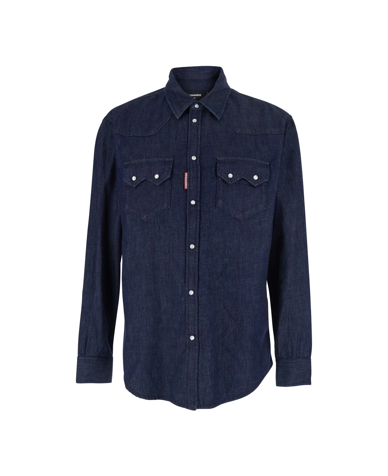 Shirt Blue Classic collar Long sleeves Front button closure Two front patch pockets with buttons Buttoned cuffs Curved hem Denim Regular fit Composition: 100% Cotton Made in: Albania Color: Blu Model number: S74DM1025D30029470