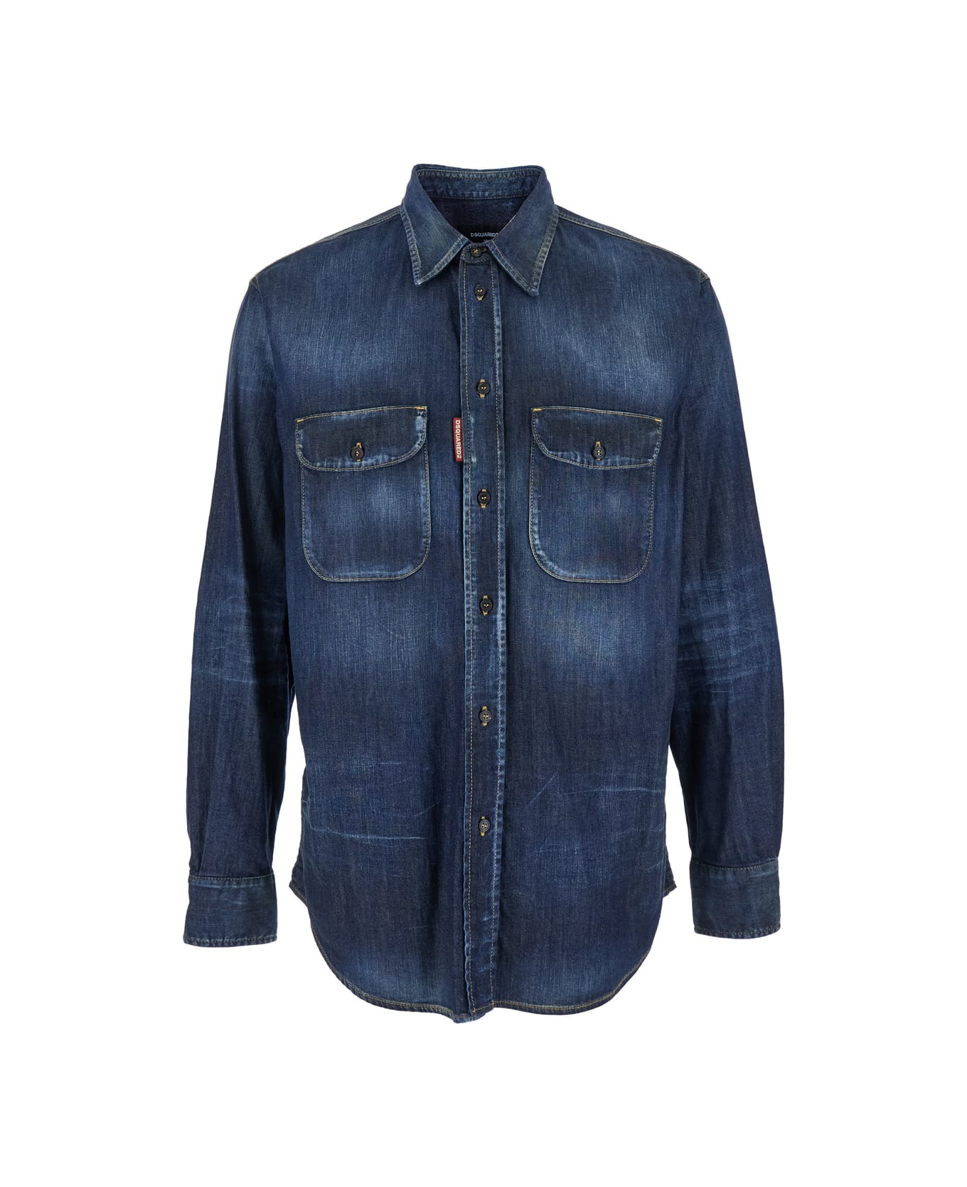 double-pockets elbow-patched denim shirt