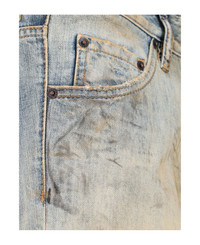 Dsquared2 'Cool Guy' jeans in light blue cotton denim with distressed wash, low waist, button closure, red logo patch on the front, five-pocket design, leather logo patch on the back, straight leg. Composition: 100% Cotton Made in: Italy Color: Light Blue Size and fit: - Vestibilita slim Model number: S71LB1659D30011470
