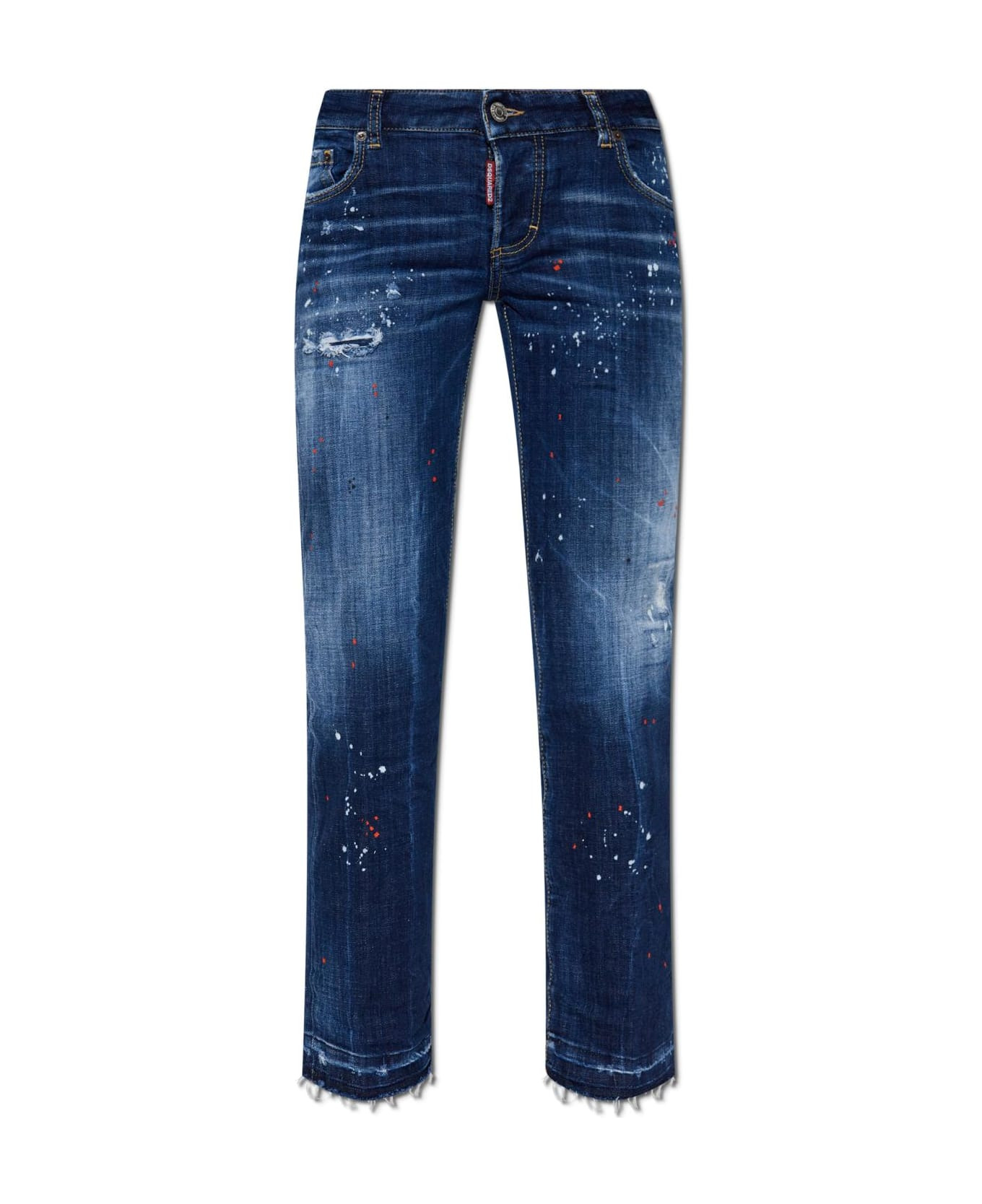Embrace avant-garde elegance with the exquisite Jeansy 'Jenna' by DSQUARED2. These slim-fit jeans offer a flattering silhouette, tailored for the modern woman. Featuring a cropped design with frayed hems, they exude an effortlessly chic and contemporary appeal. Crafted from deep navy denim imbued with stretch, these jeans promise unrivaled comfort and flexibility. The artful distressing and delicate paint splatters enhance their vintage allure, adding an artistic flair. A bold DSQUARED2 inscription is subtly emblazoned on a red tab near the pocket, complemented by the brand's signature logo near the front closure and a distinctive leather patch on the rear waistband. Designed with five traditional pockets and accentuated by quintessential jean-stitching and rivets, these jeans embody an impeccable blend of style and functionality, a hallmark of the acclaimed brand spearheaded by visionary designers Dan and Dean Caten. Why Choose This Product? Features a trendsetting slim-fit and cropped silhouette with frayed hems. Enhanced with vintage-inspired distressing and designer branding for a unique statement. Made from premium stretch denim ensuring all-day comfort. Includes practical five-pocket styling with bespoke detailing. Composition: 99% Cotton 99% Cotton 1% Elastane 1% Elastane Made in: Italy Color: Navy Blue Model number: S75LB1064S30664