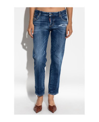Introducing the Jenna jeans by Dsquared2, an exquisite expression of contemporary sophistication and everyday allure. Tailored in a refined slim silhouette with a gently tapered leg and a classic-to-mid rise, these jeans masterfully embrace the female form. The premium stretch denim delivers unparalleled comfort while ensuring a flawless fit. The distinctive washed finish accentuated by luminous fading and meticulously controlled abrasions infuses each pair with an air of effortless luxury. Signature accents include deep yellow contrast stitching, a designer-branded patch at the waistband, and the iconic red tag at the front pocket, marking these jeans as unmistakably Dsquared2. Why choose this product? Exceptional comfort and fit through stretch-infused denim Elegant, exclusive washed pattern with subtle, hand-finished distressing Refined brand detailing for a discerning, distinctive style Effortlessly transitions from daywear to sophisticated evening looks Composition: 93% Cotton 93% Cotton 93% Cotton 93% Cotton 4% Polyester 4% Polyester 4% Polyester 4% Polyester 3% Elastane 3% Elastane 3% Elastane 3% Elas Color: Navy Blue Model number: S75LB1096S30872