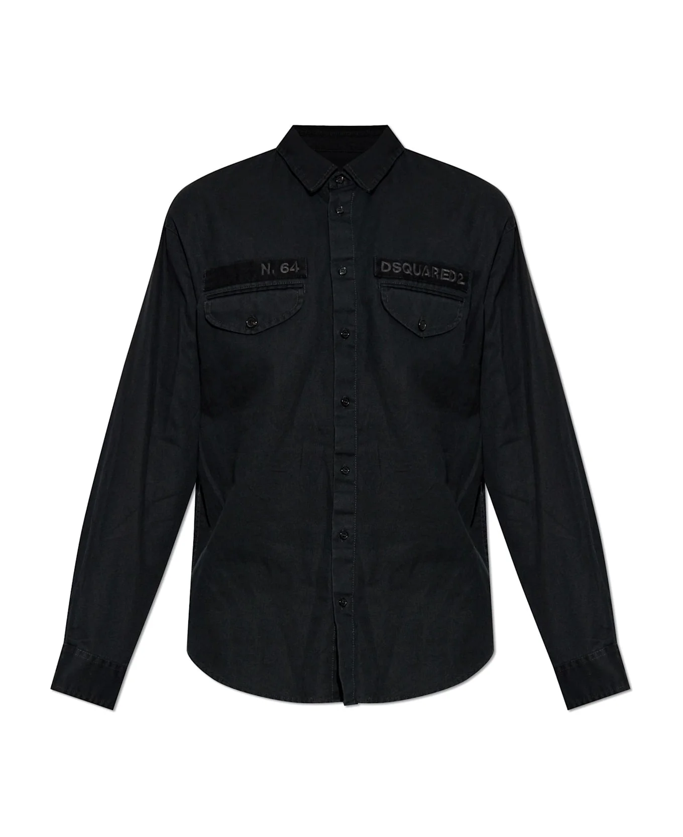 Elevate your wardrobe with this impeccably crafted black logo shirt by Dsquared2. Effortlessly blending American glamour with Italian refinement, the shirt features a timeless straight cut with subtly rounded hem, designed for versatile styling worn tucked in or left loose. The fabric boasts a refined, discreetly textured weave, exuding understated sophistication only high-quality cotton can provide. Distinctive design details include two symmetrical flap pockets at the chest, each adorned with exclusive tonal embroidery Composition: 100% Cotton 100% Cotton 100% Cotton Color: Nero Model number: S74DM0952D35264900