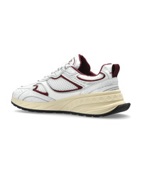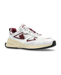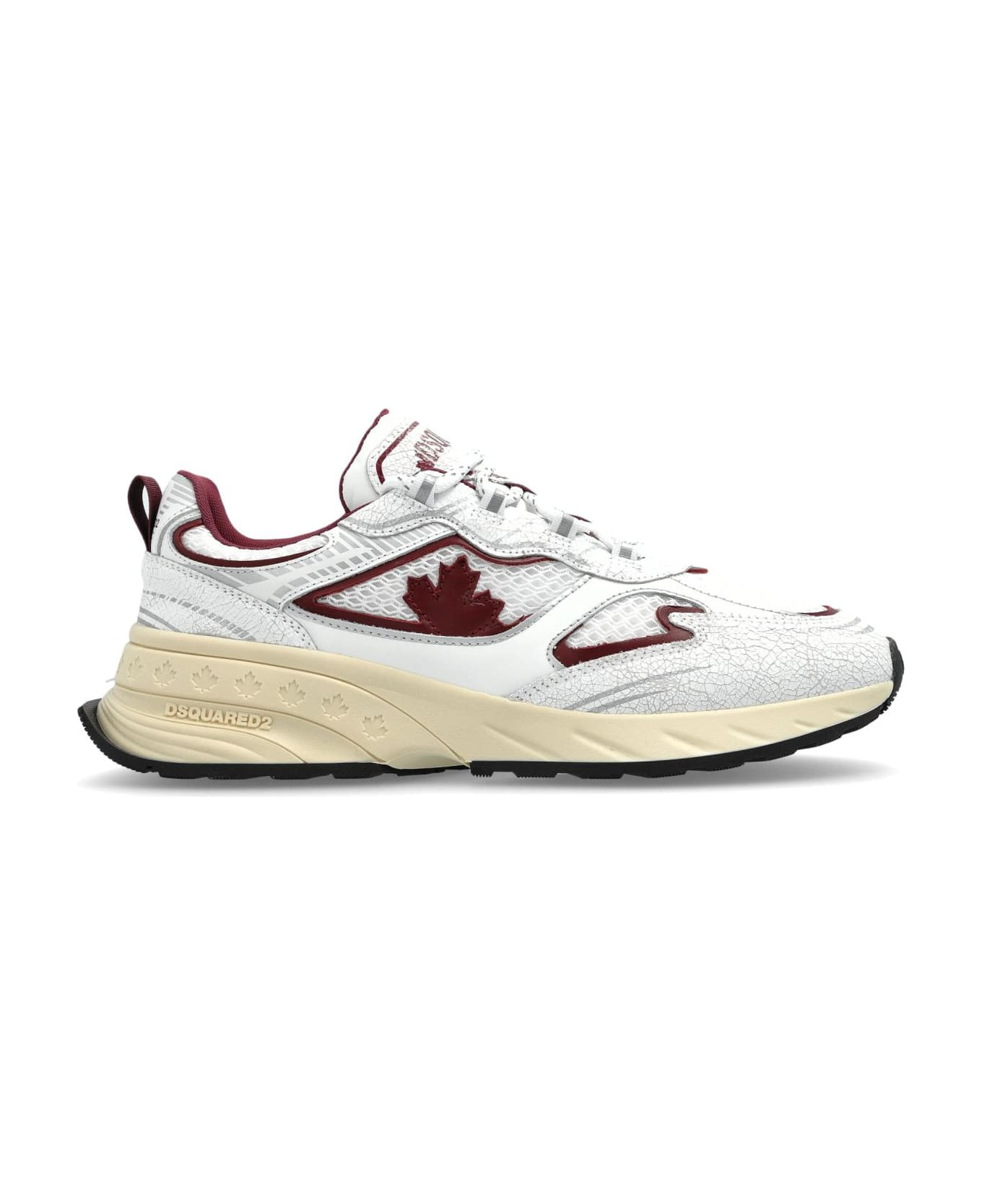 The Sprinter Sneakers from the exclusive Dsquared2 collection exemplify modern luxury with a bold, low-top silhouette. Impeccably crafted from a harmonious blend of supple leather, refined synthetic panels, and textured mesh, this pair ensures exceptional breathability, comfort, and enduring resilience. Distinctive deep red contours and a striking maple leaf motif adorn the side, celebrating sophisticated Canadian artistry while projecting unmistakable prestige. The prominent DSQUARED2 branding on the tongue and embossed detailing on the sole elevate the designer's unique vision, complementing the ergonomically contoured ivory outsole with a matching tread for optimal traction. Why choose this product? Premium leather and mesh composition for ultimate comfort and durability Exclusive maple leaf motif and signature designer accents Innovative fusion of athletic functionality and contemporary elegance Distinctive, ergonomically sculpted sole for enhanced support Authentic declaration of refined, cosmopolitan style Composition: Inner Layer: Fabric Leather Outer Layer: Leather Fabric Sole: 100% Rubber Size and fit: - Sole Height at the highest point: 5cm Model number: SNW030343108445