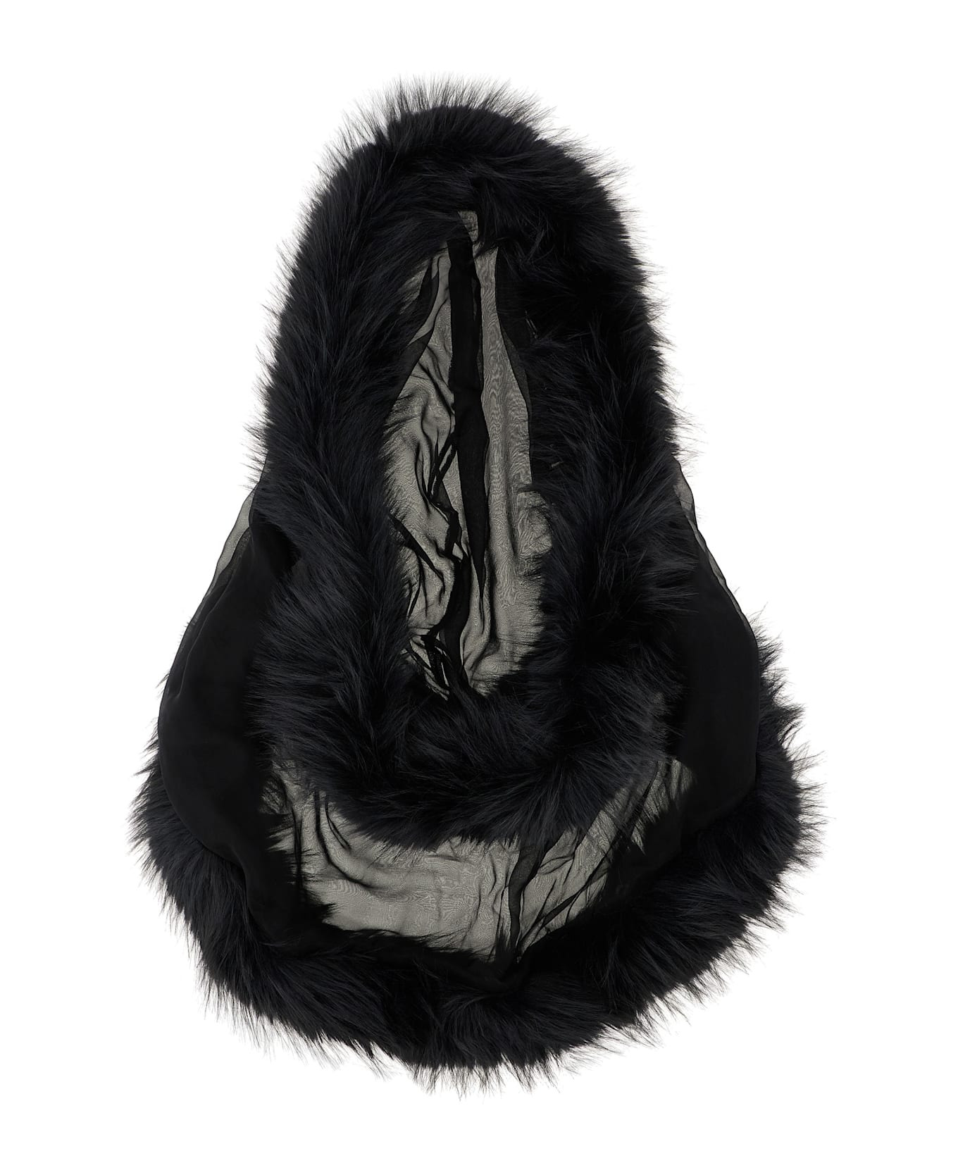 Silk chiffon hooded collar with long-haired fur-effect fabric piping. Composition: 100% silk Made in: Italy Color: Black Size and fit: - One size Model number: S72FX0048S53639900