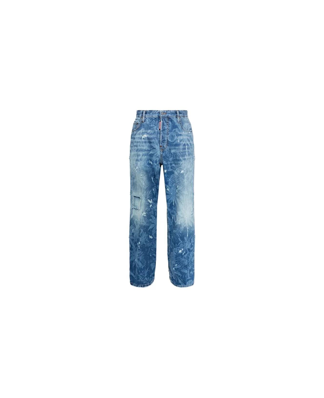 light blue palm print ripped detailing whiskering effect five pockets belt loops Made in: Albania Color: BLUE Model number: D30011S74LB1877