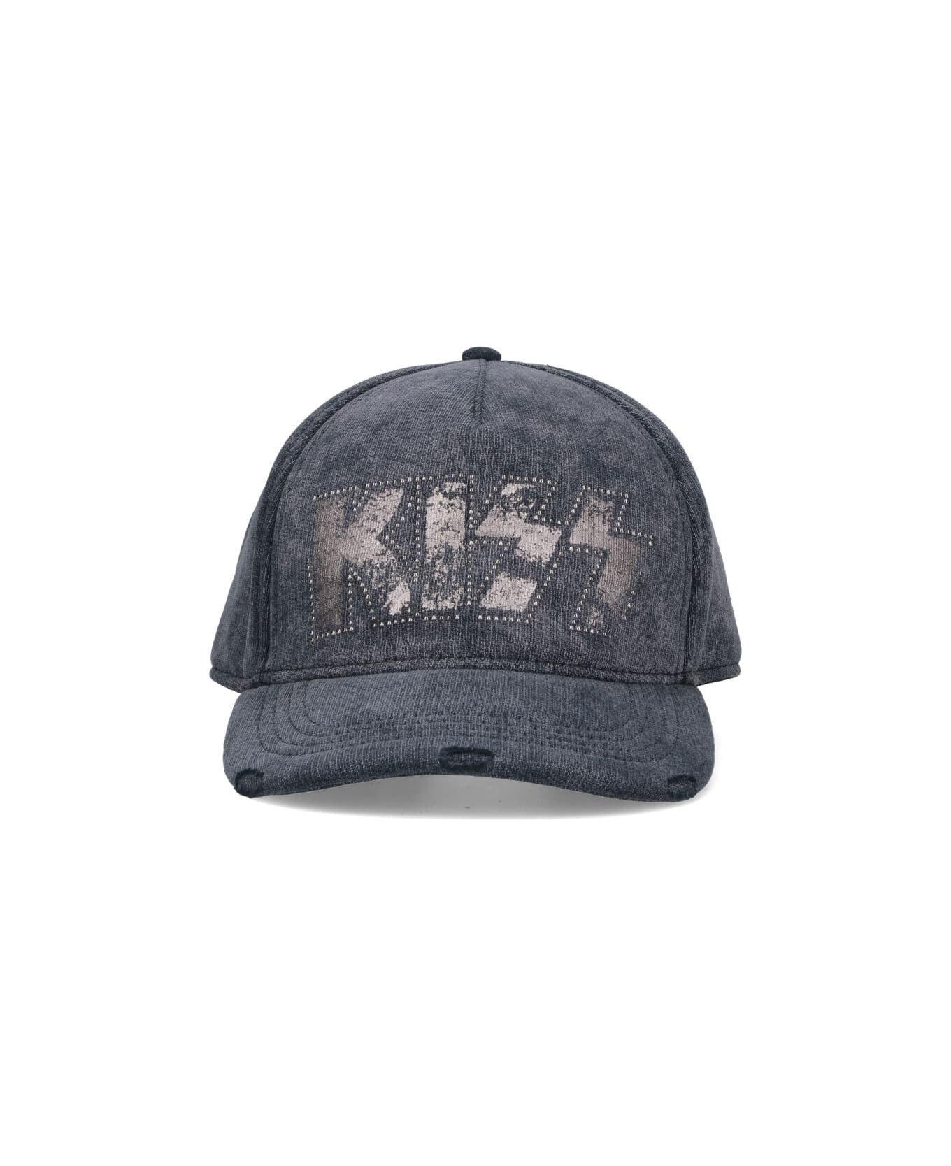 Dsquared2 'Kiss' grey cotton baseball cap with distressed effect, curved visor, logo print on the front, silver studs detail, logo embroidery at the back, adjustable strap at the back. Composition: 100% Cotton Made in: Italy Color: Gray Model number: BCM0954167011012129