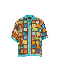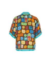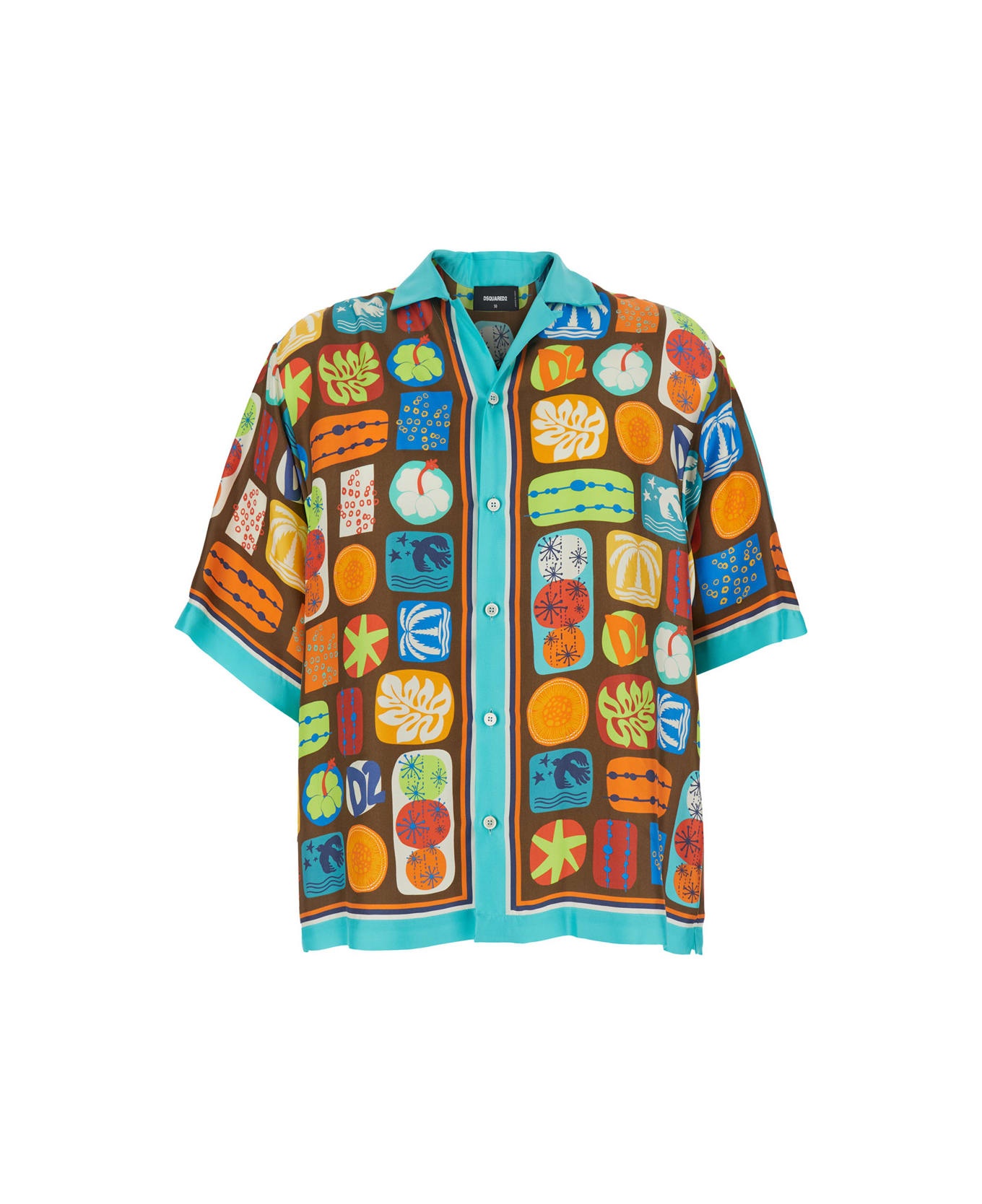 Multicolor Shirt With Cuban Collar And All-over Printed Motif In Silk Man