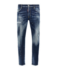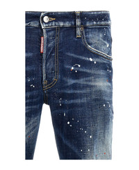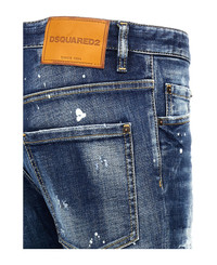 'Supertwinky' stretch cotton denim jeans with used-effect details and patent leather stains, button closure, five pockets, and leather logo label at the back. Composition: 99% cotton, 1% elastane Made in: Romania Color: Blue Size and fit: - Skinny fit Model number: S74LB1661S30664470